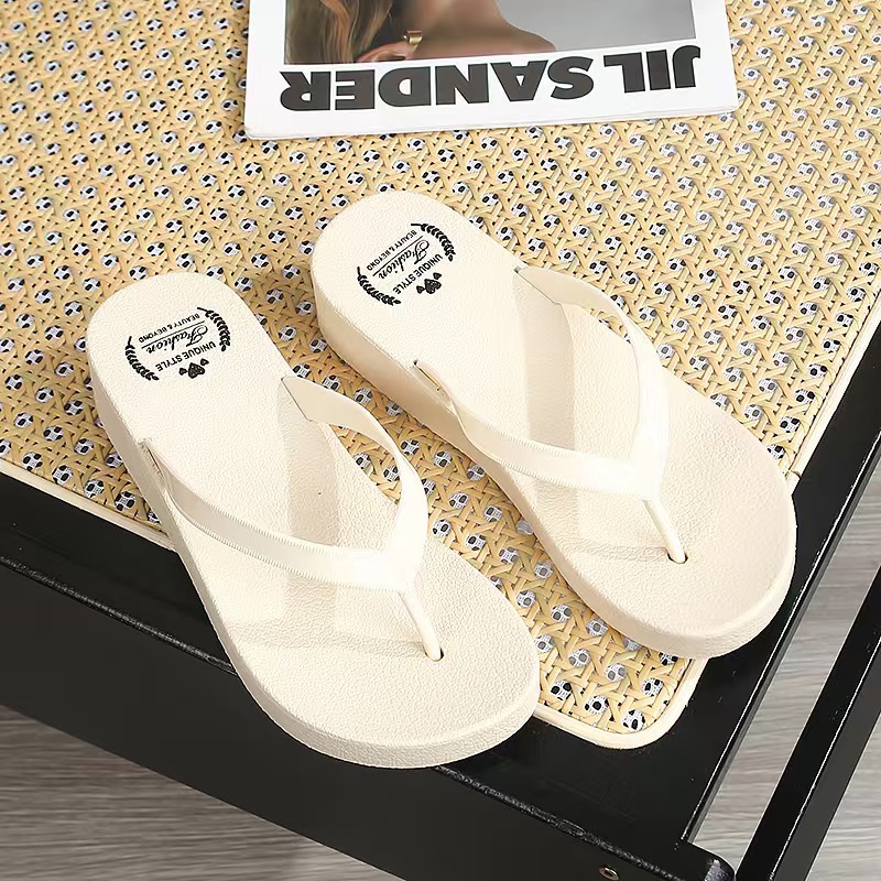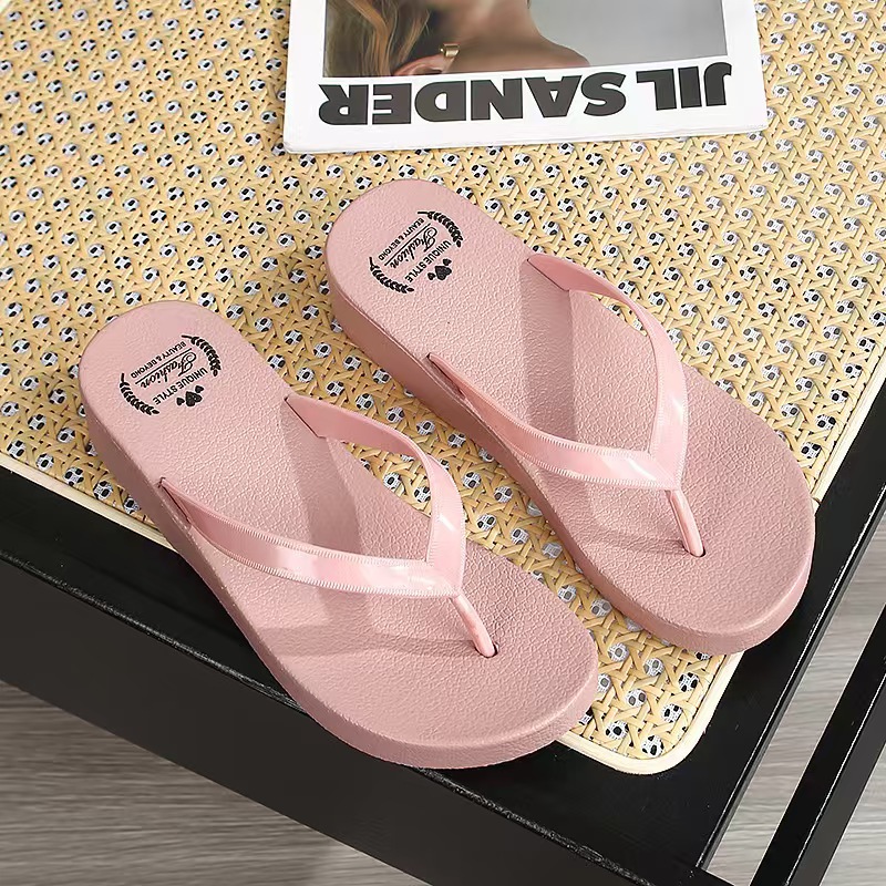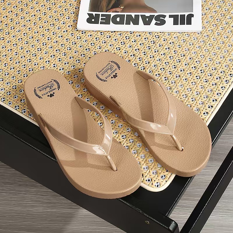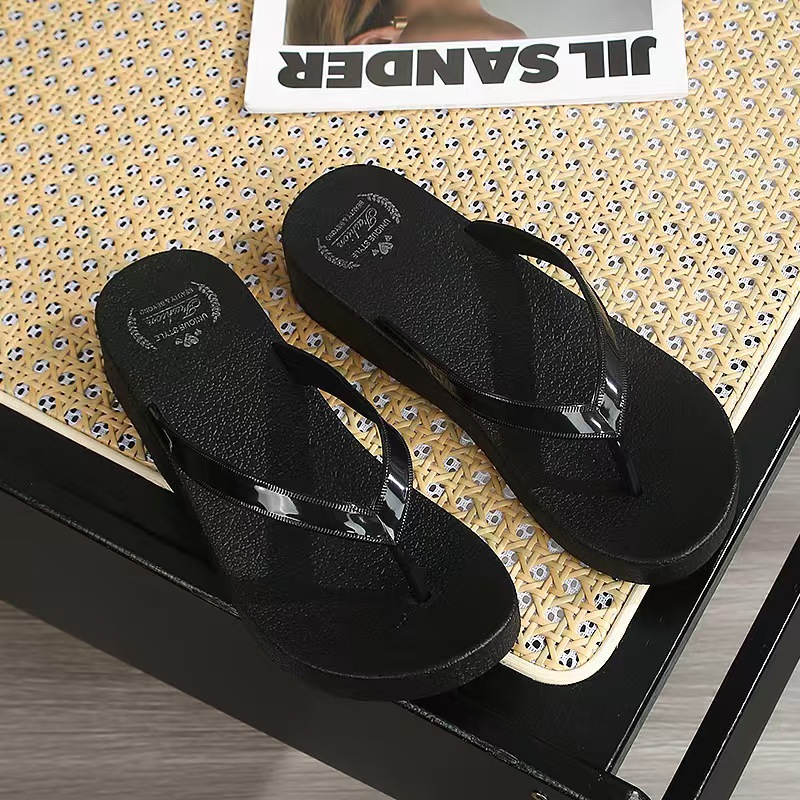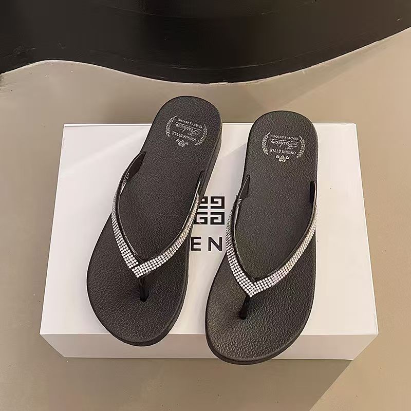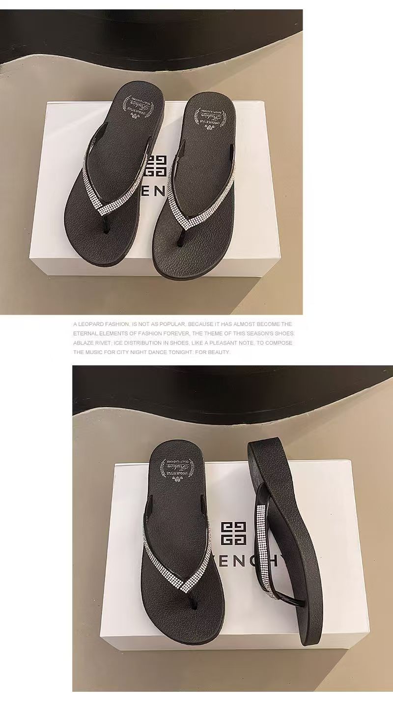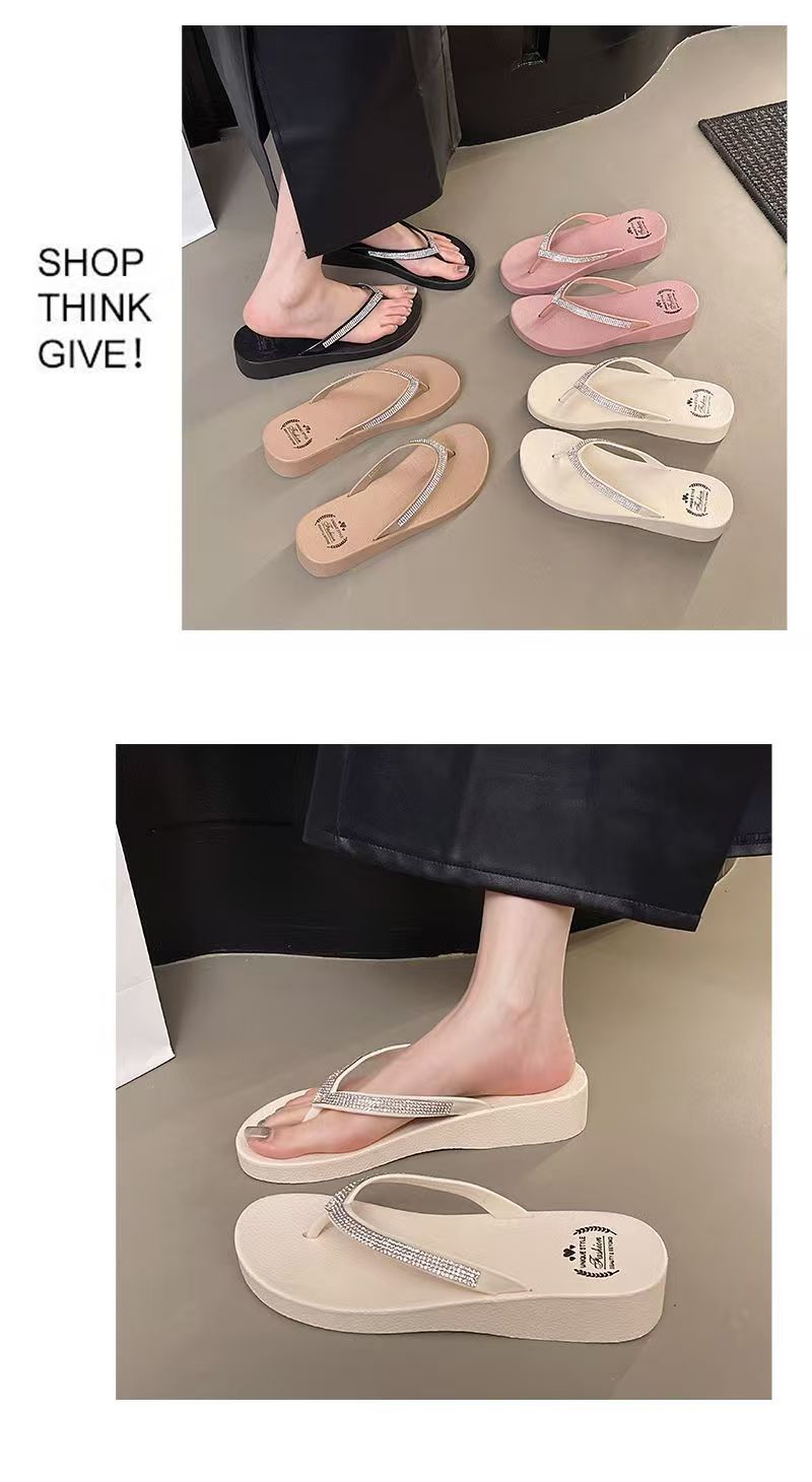 여성용 패셔너블한 라인스톤 슬리퍼, 여름용 두꺼운 밑창 웨지힐 슬리퍼, 스커트가 달린 프렌치 비치 슈즈스토어 가기