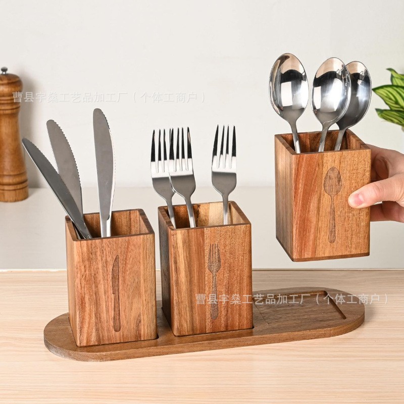 나무 주방 식기 보관 상자 젓가락 숟가락 보관 상자 간단한 나무 레스토랑 젓가락 튜브 칼과 포크 보관함스토어 가기