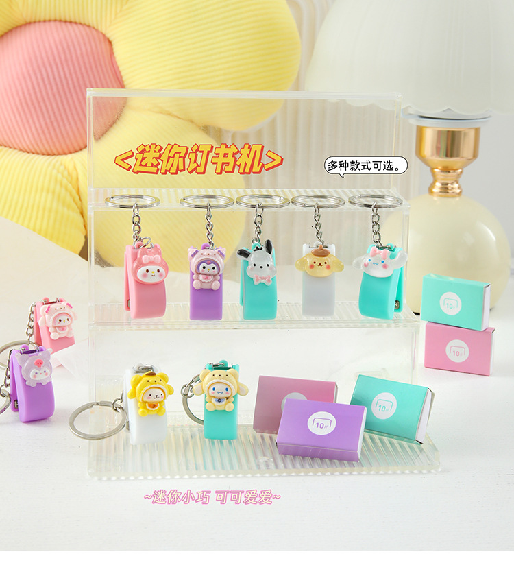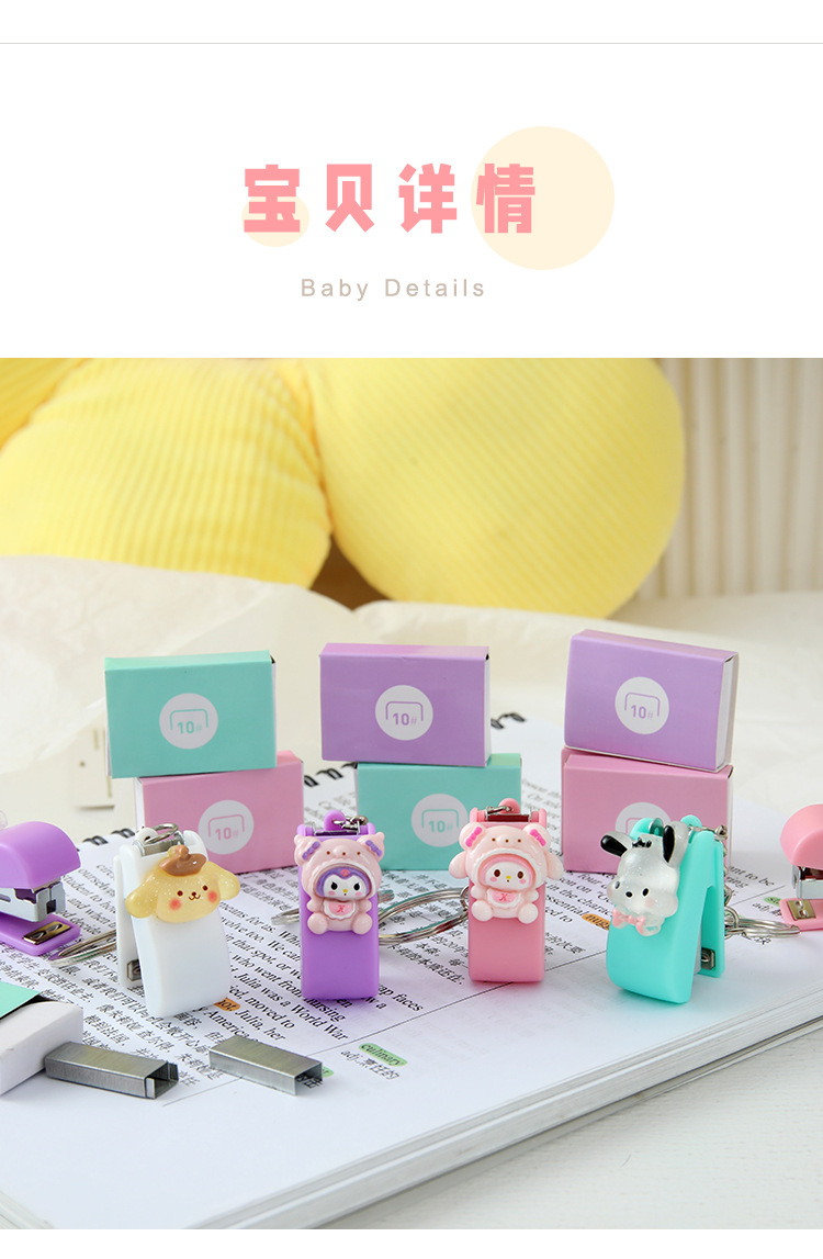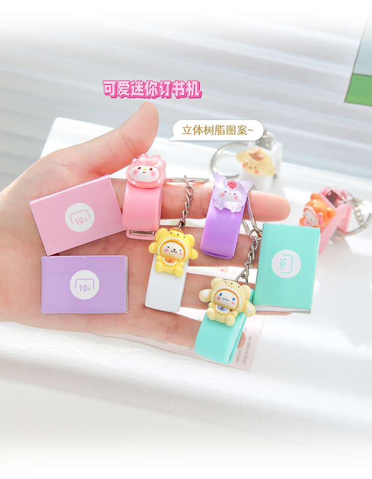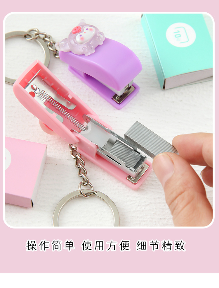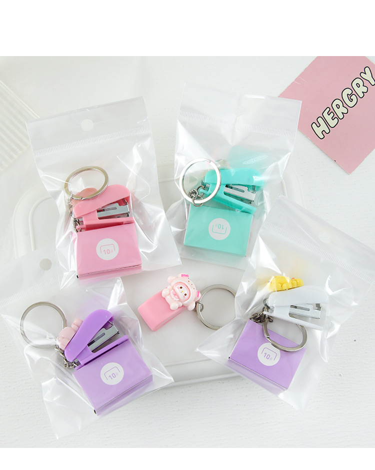 만화 귀여운 미니 스테이플러 스테이플 세트 학생 휴대용 펜던트 바인딩 기계 작은 사무실 바인더스토어 가기
