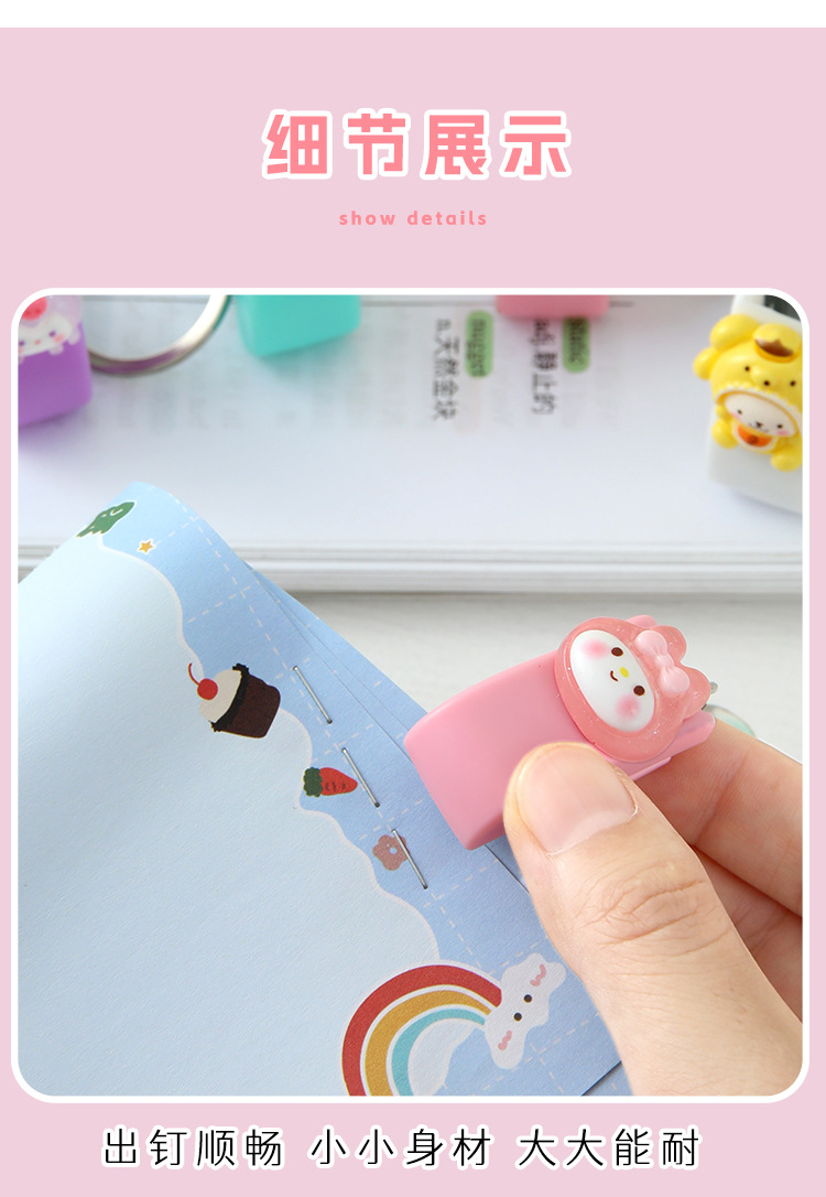 만화 귀여운 미니 스테이플러 스테이플 세트 학생 휴대용 펜던트 바인딩 기계 작은 사무실 바인더