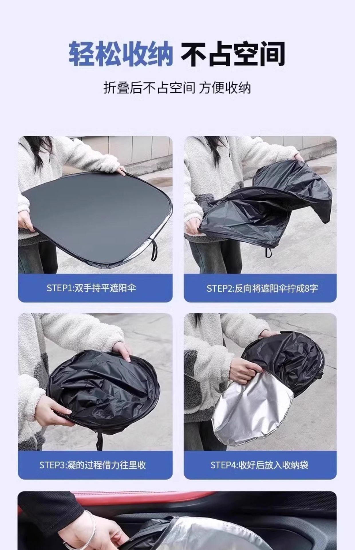 [2025년 신형 업그레이드 및 강화] 자동차 차양, 자외선 차단, 단열 및 차양, 전면 차양, 냉각 티타늄 실버