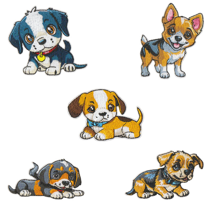 새로운 고급 만화 패션 강아지 시리즈 자수 천 스티커, 다림질 가능한 컴퓨터 자수 스탬프 DIY 패치 스티커