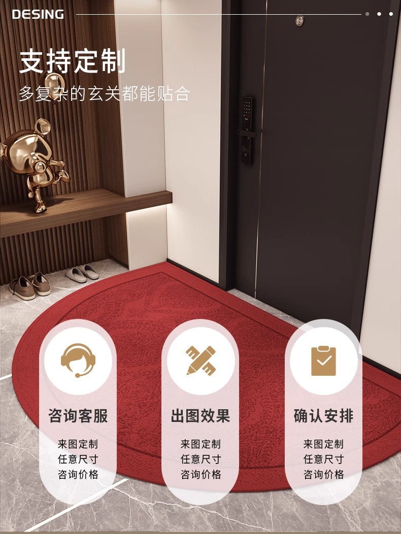 빨간색 반원형 입구 문 바닥 매트 새해 집들이 축제 홈 발 매트 입구 문 매트 미끄럼 방지 카펫스토어 가기