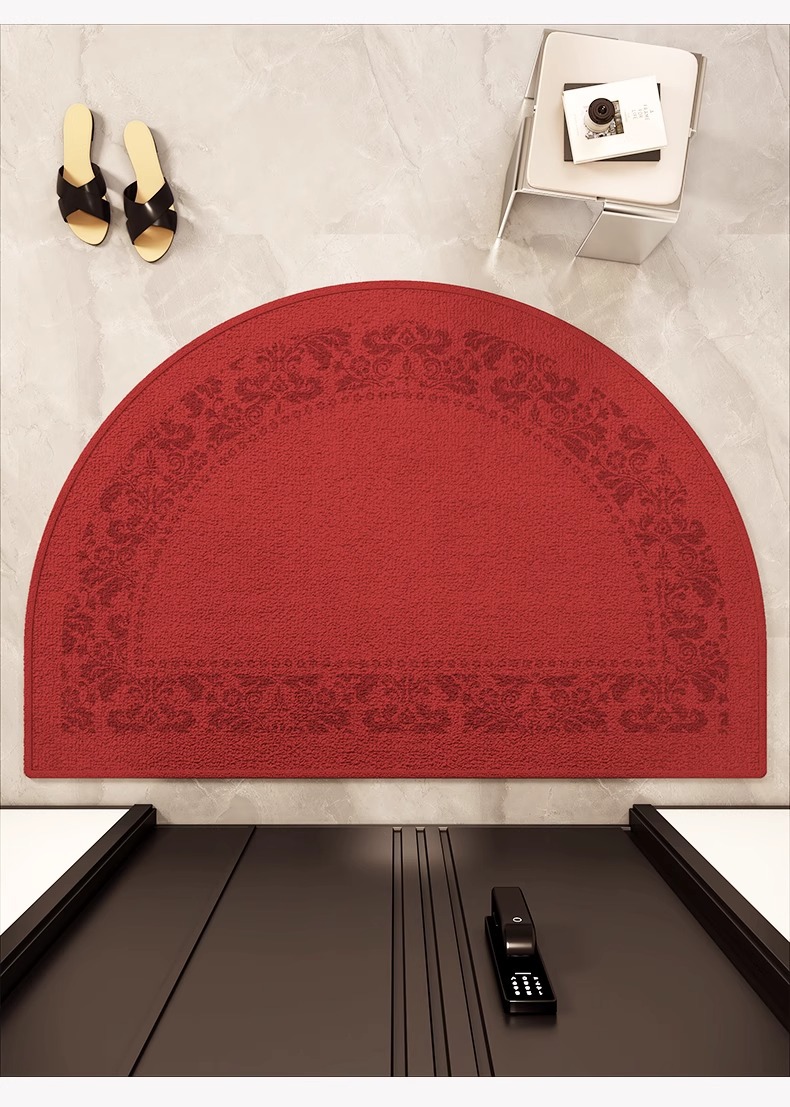 빨간색 반원형 입구 문 바닥 매트 새해 집들이 축제 홈 발 매트 입구 문 매트 미끄럼 방지 카펫