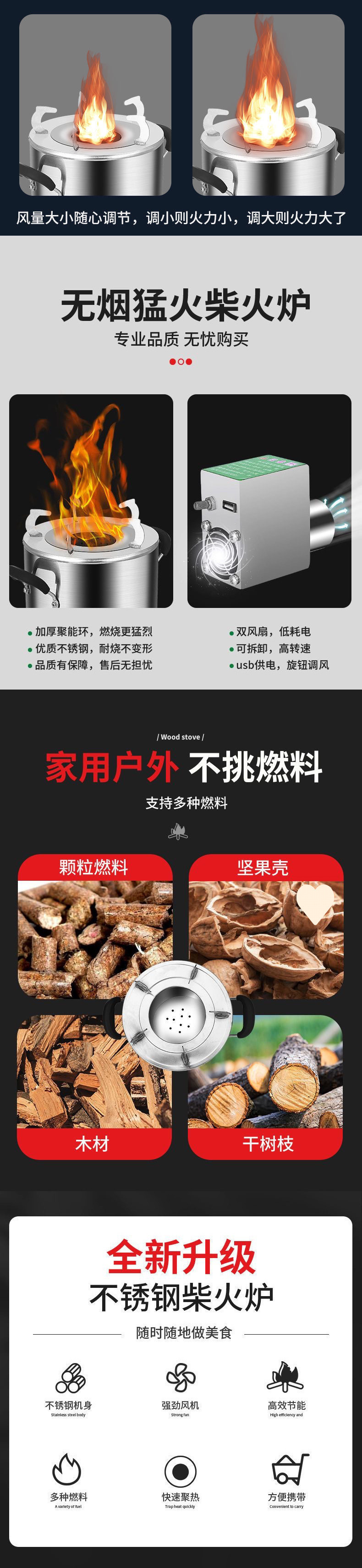 柴火灶节能家用木材气化炉农村无烟新款加厚便携不锈钢柴火炉