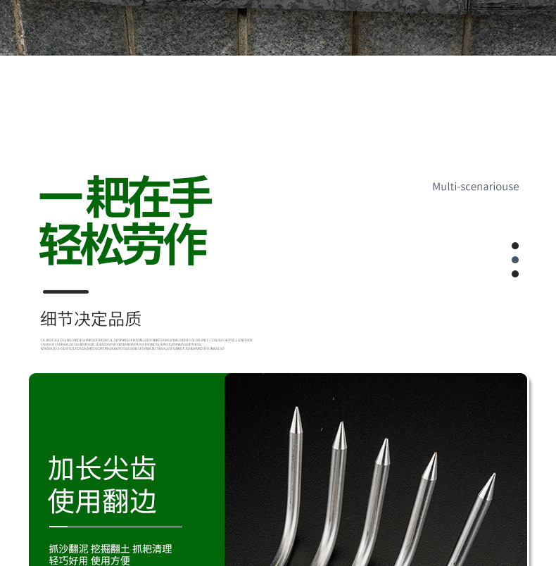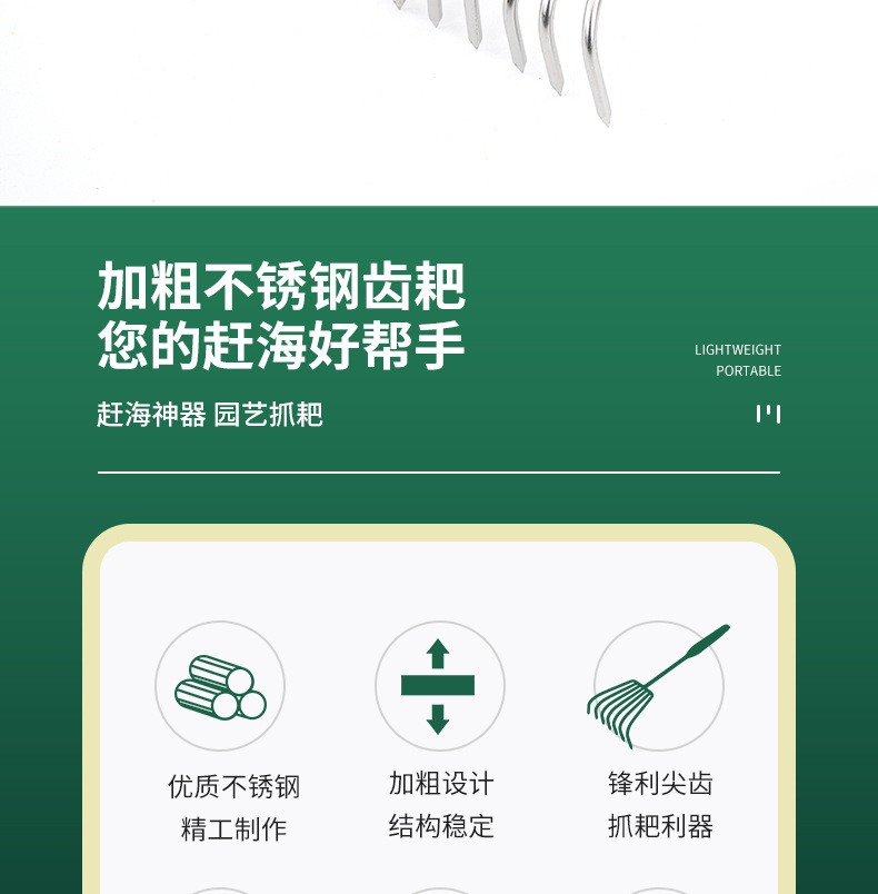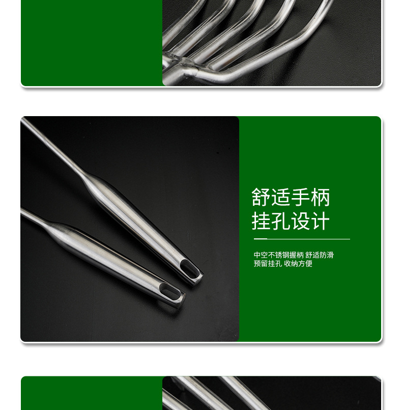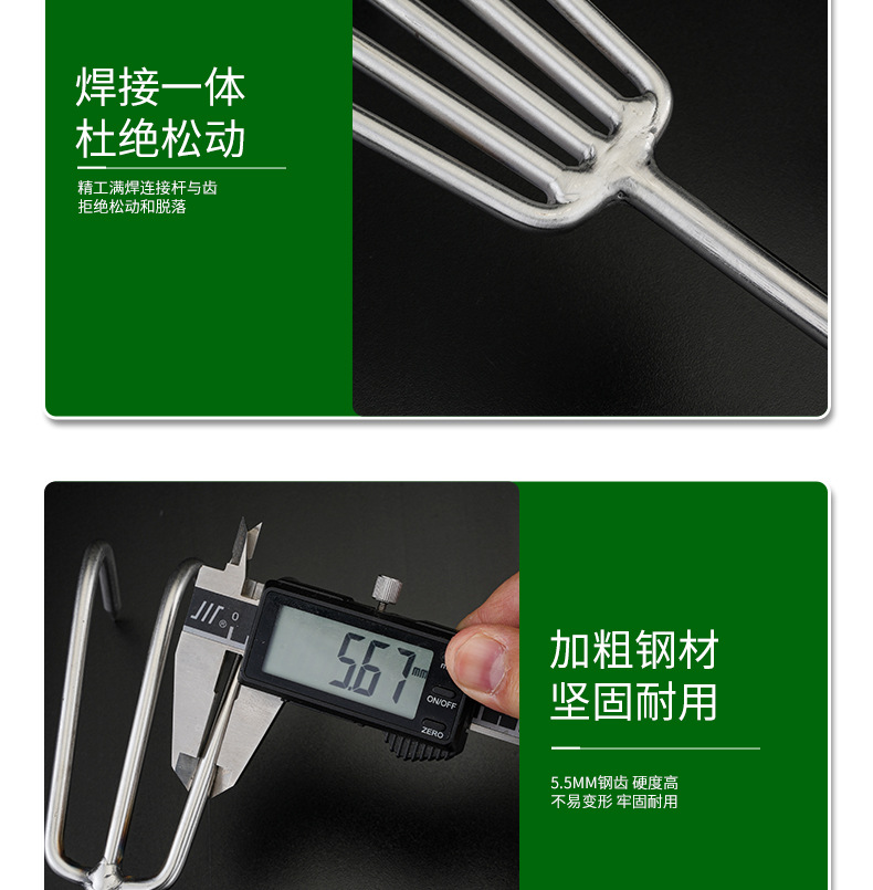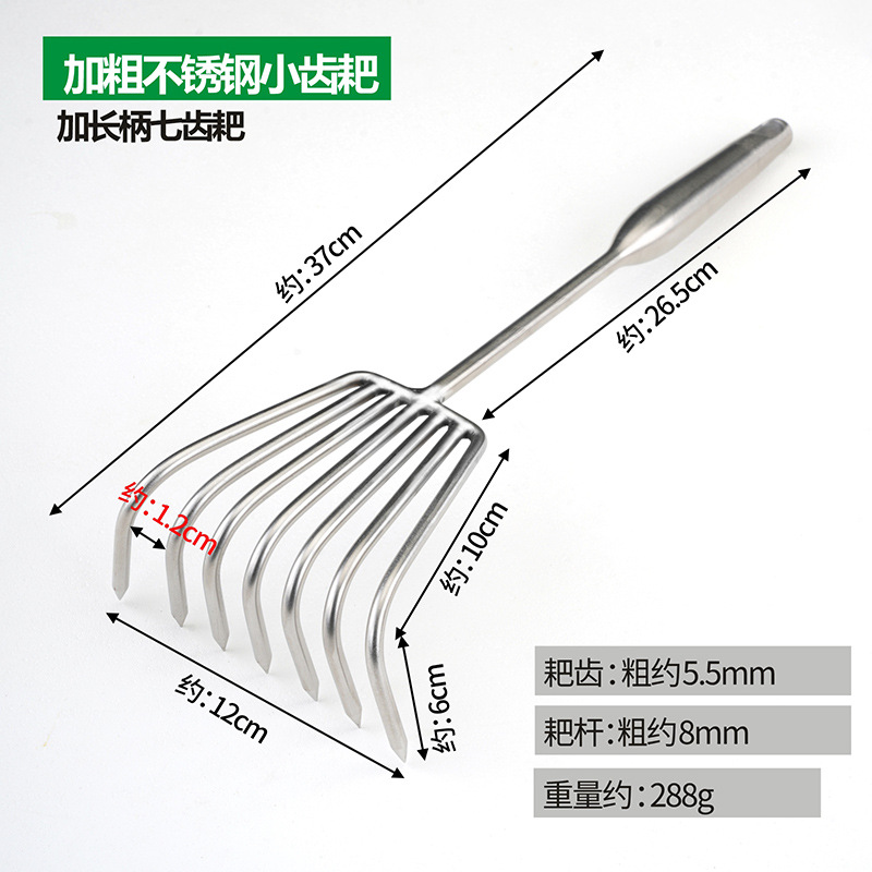 • 두껍고 긴 손잡이 스테인레스 스틸 7날 갈퀴
