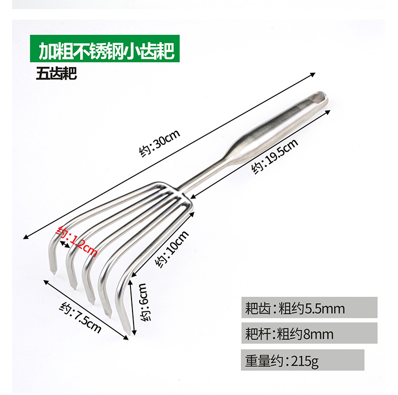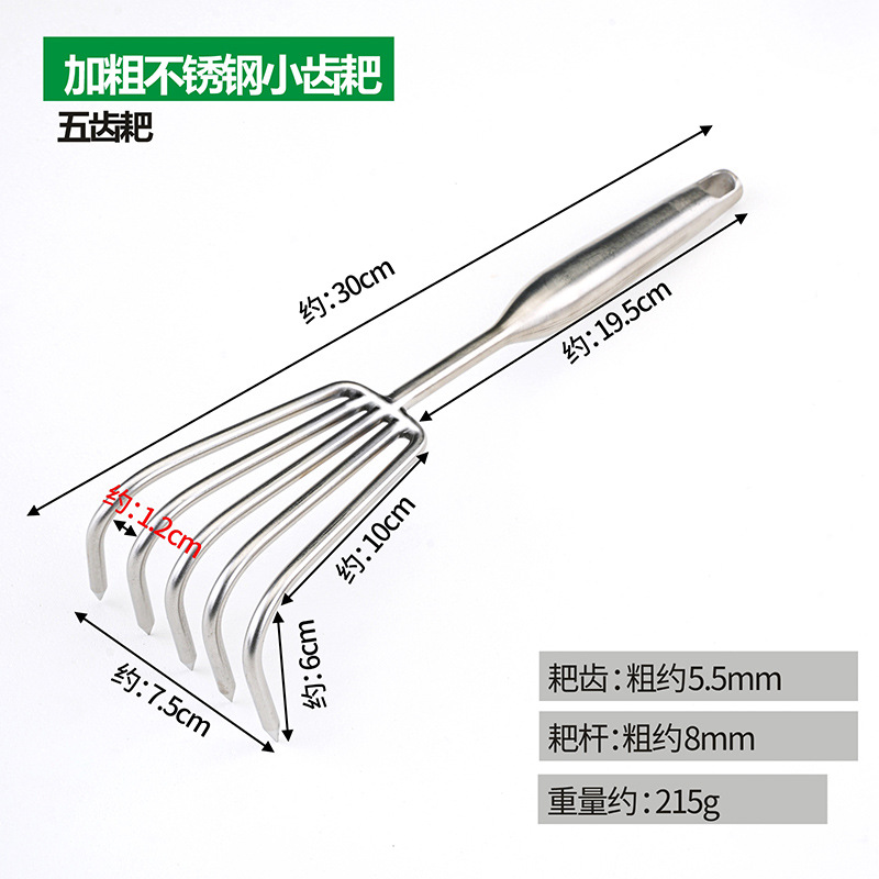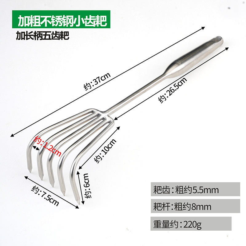 • 두껍고 긴 손잡이 스테인레스 스틸 5날 갈퀴