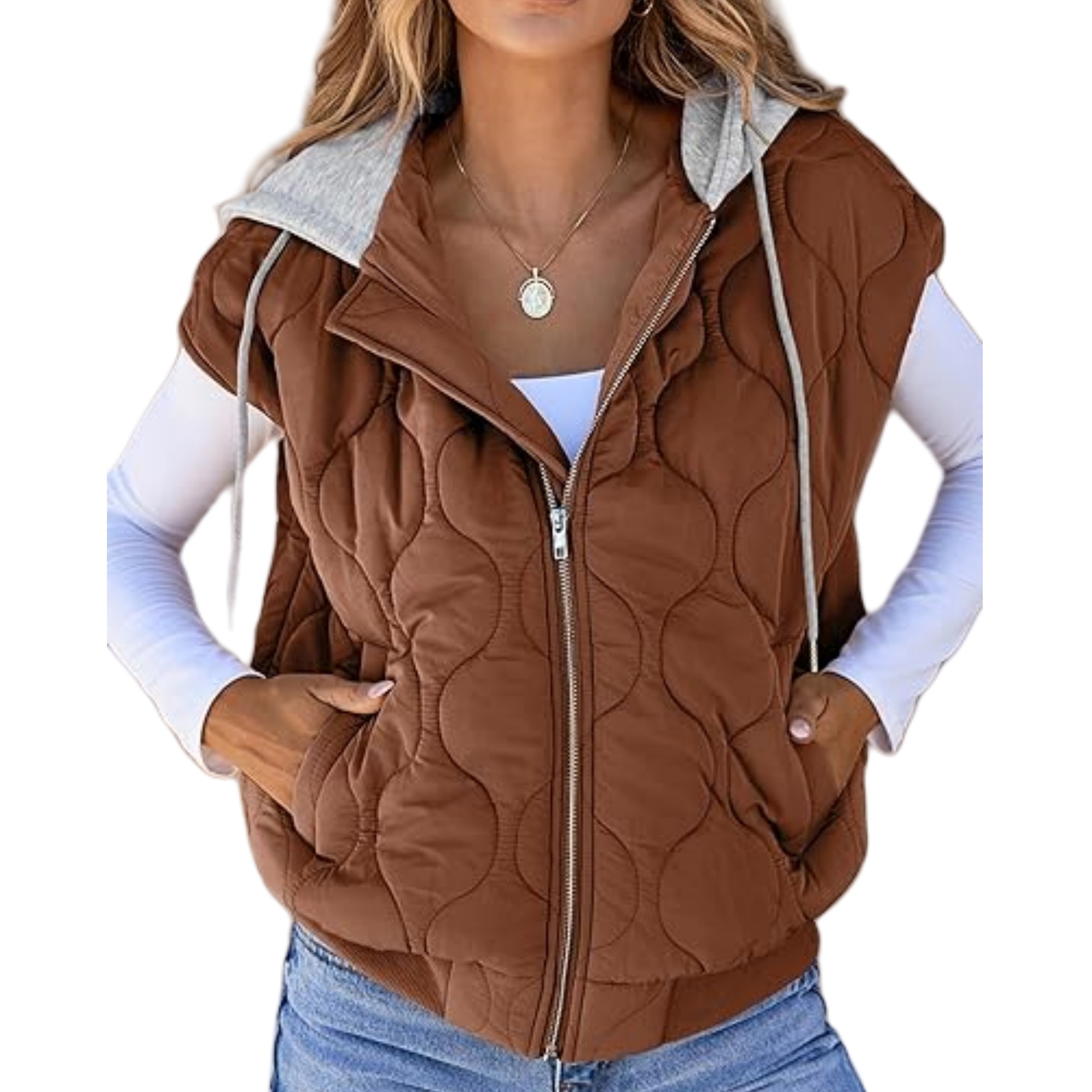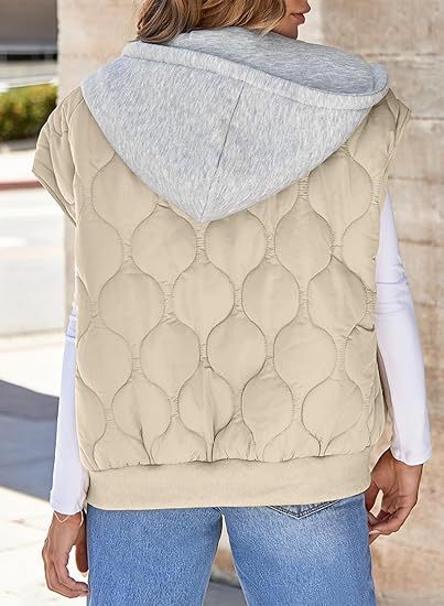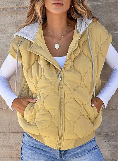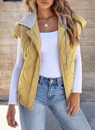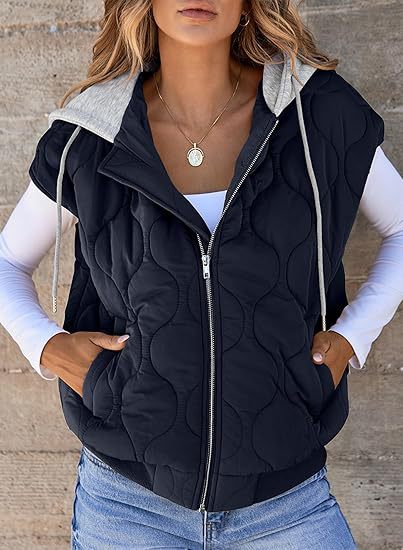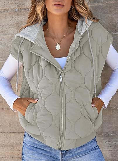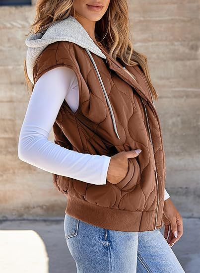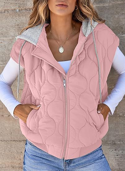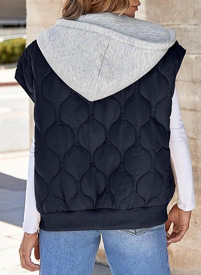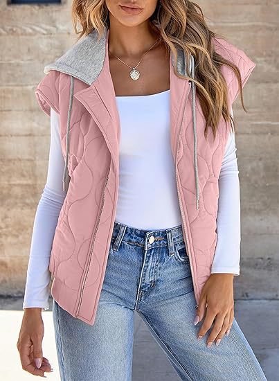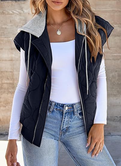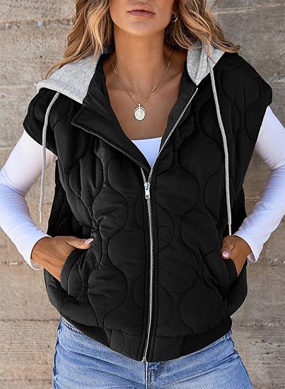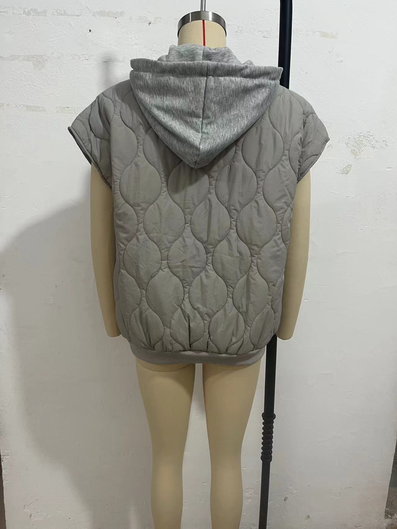 국경 간 2025 뜨거운 판매 가을 새로운 색상 매칭 민소매 자켓 여성 유럽과 미국의 간단한 다목적 Drawstring 후드 조끼 여성스토어 가기