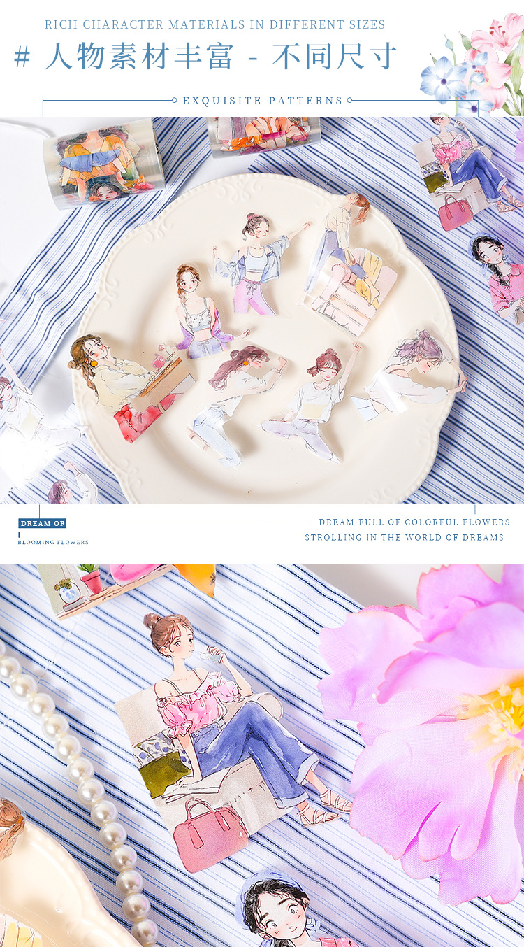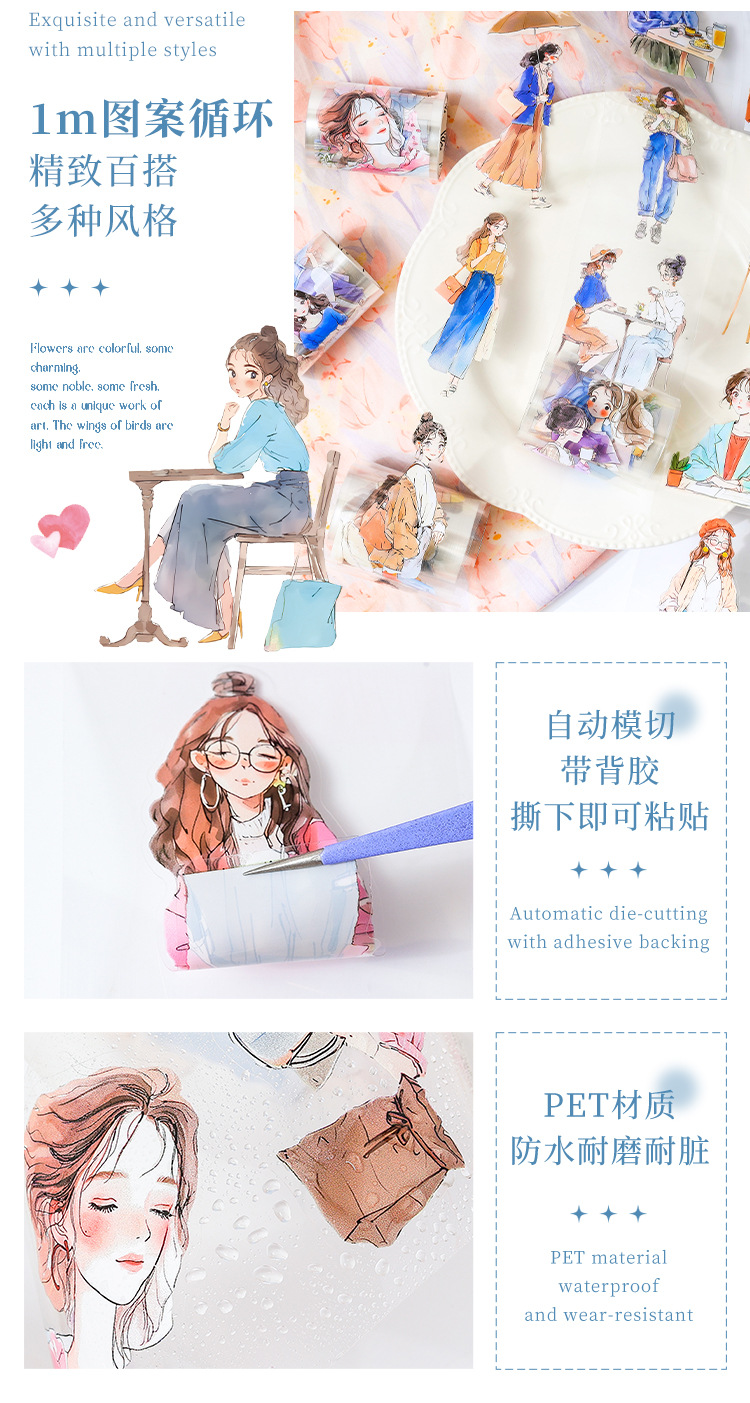 Yuezhen Gentle Years 필름 커팅 테이프 핸드북 테이프 크로스보더 스티커 테이프 캐릭터 손으로 그린 DIY 핸드북 테이프스토어 가기