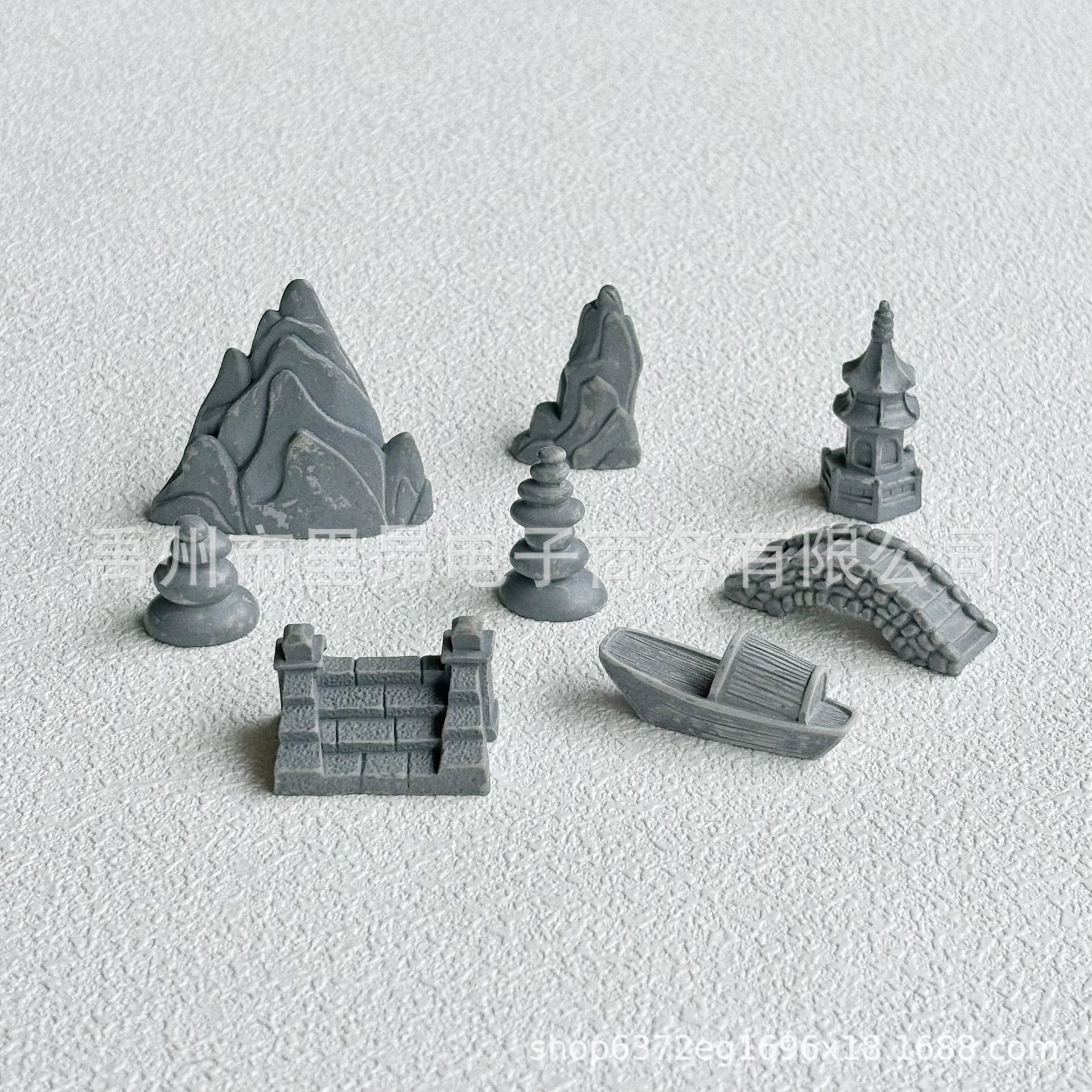 장면 모델 복고풍 바위 보트 탑 건물 수지 액세서리 마이크로 풍경 정원 풍경 diy 조경스토어 가기
