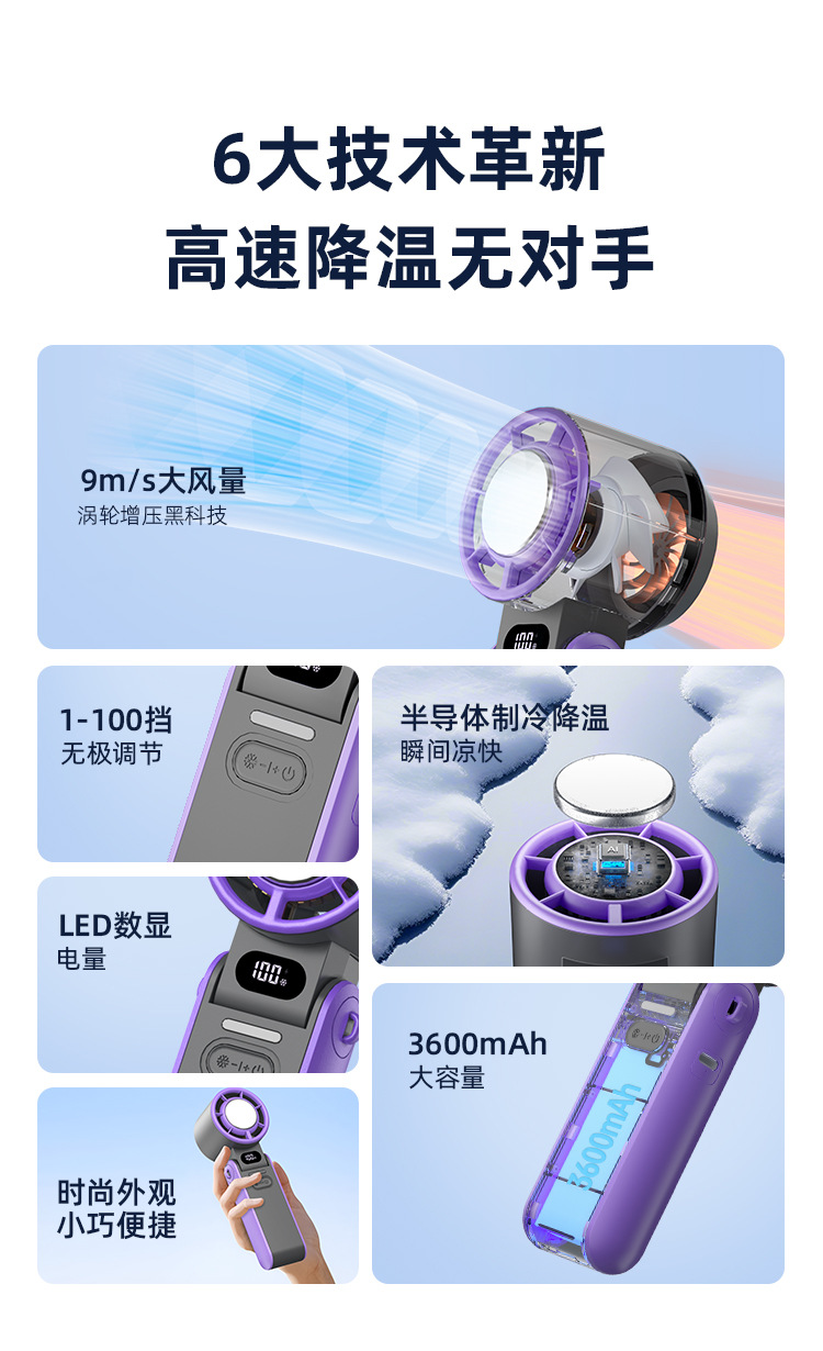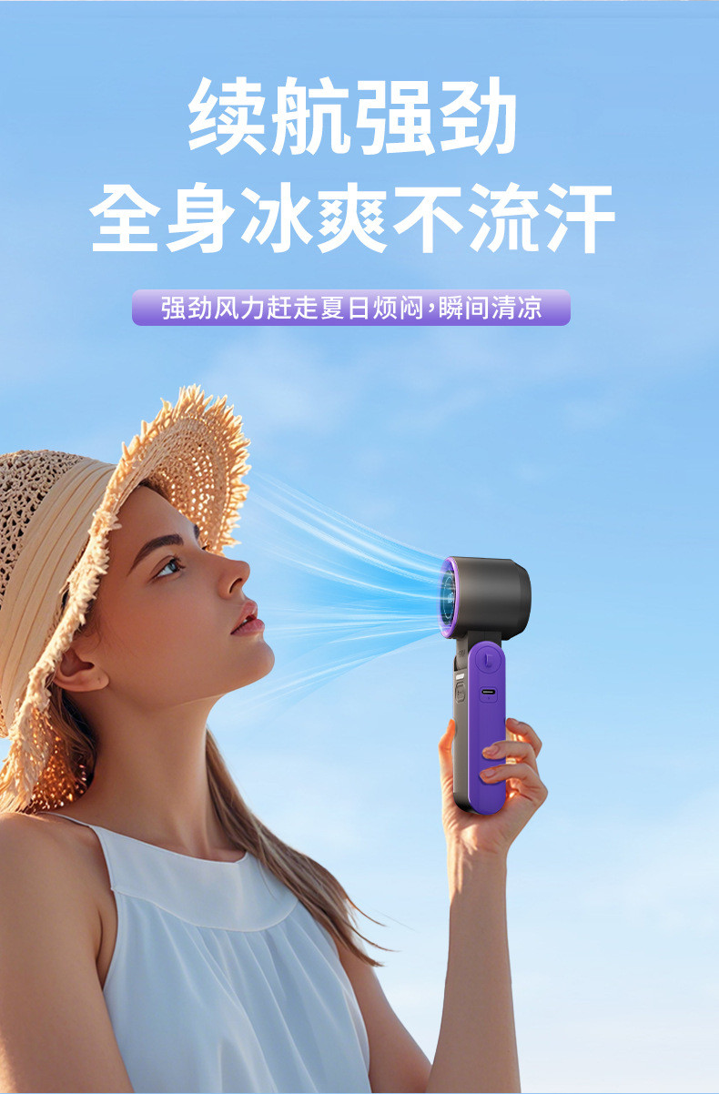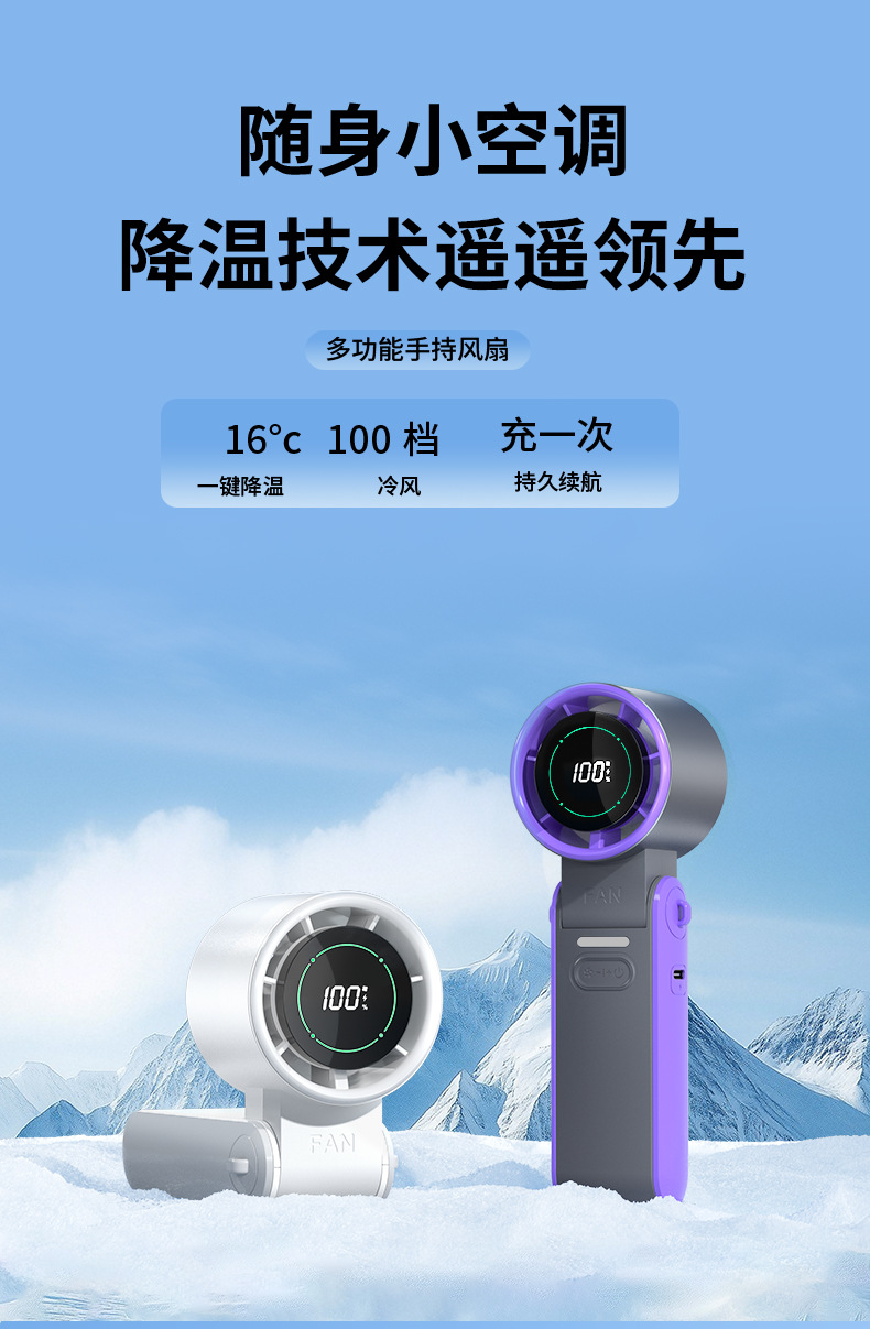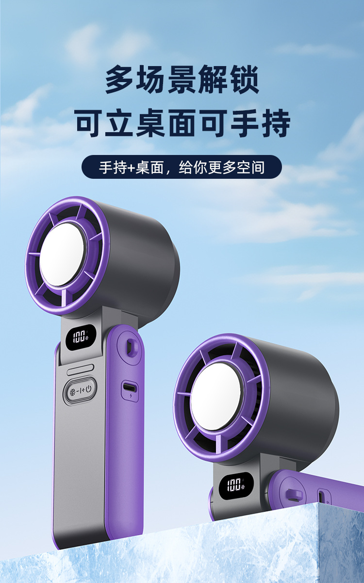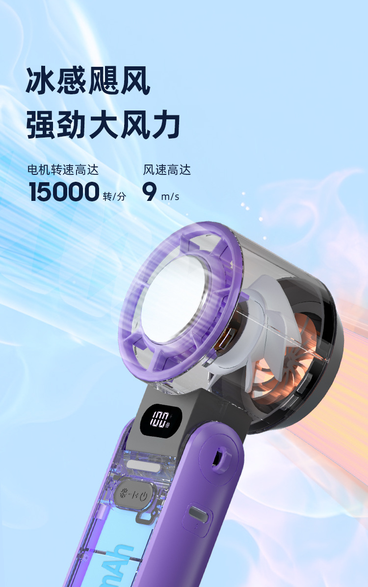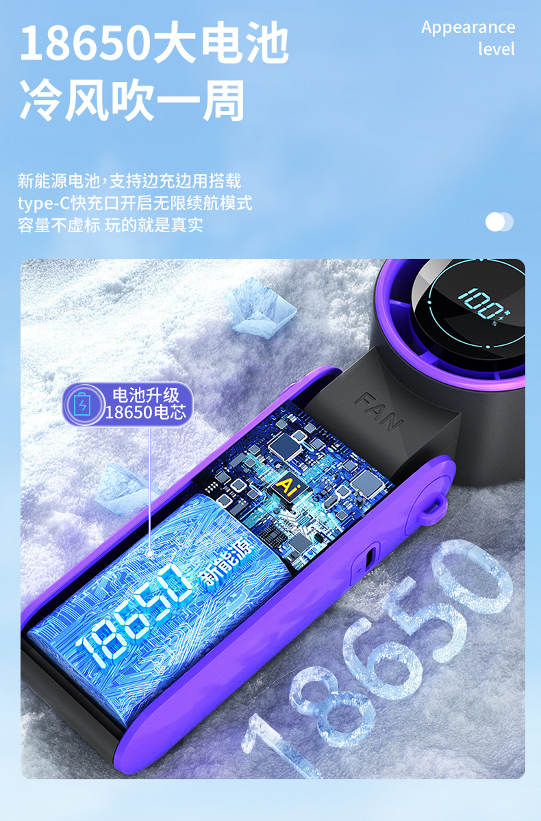 국경 간 휴대용 팬 고속 터빈 얼음 냉각 팬 미니 휴대용 교수형 목 접이식 팬
