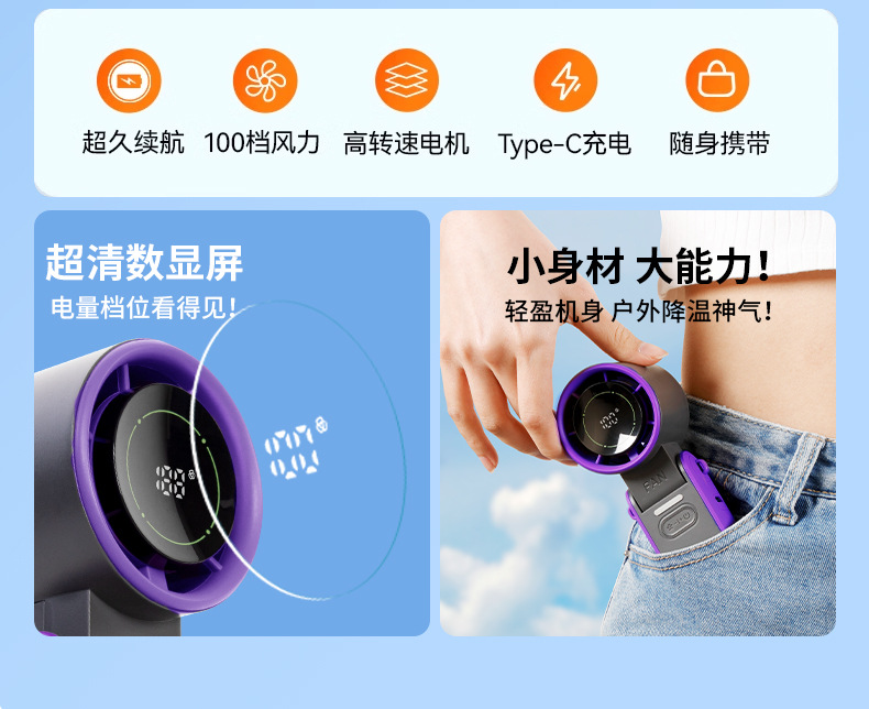 국경 간 휴대용 팬 고속 터빈 얼음 냉각 팬 미니 휴대용 교수형 목 접이식 팬스토어 가기
