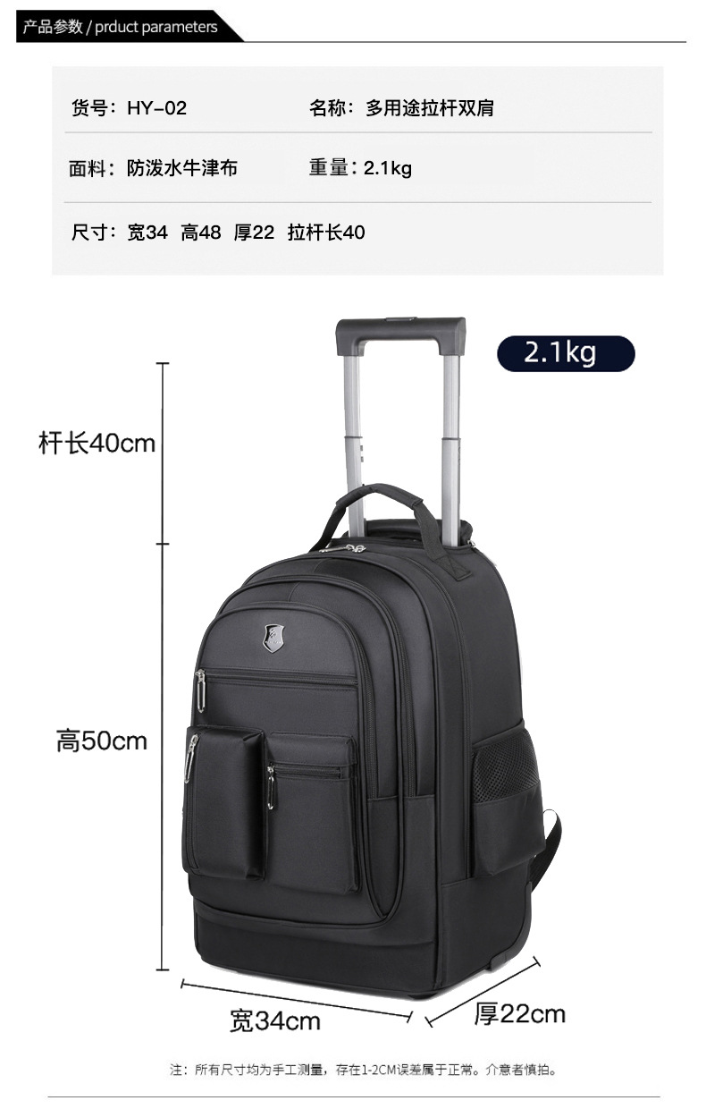 옥스포드 천 트롤리 가방 도매 대용량 솔리드 컬러 통근 비즈니스 배낭 도르래 수하물 가방 여행 가방