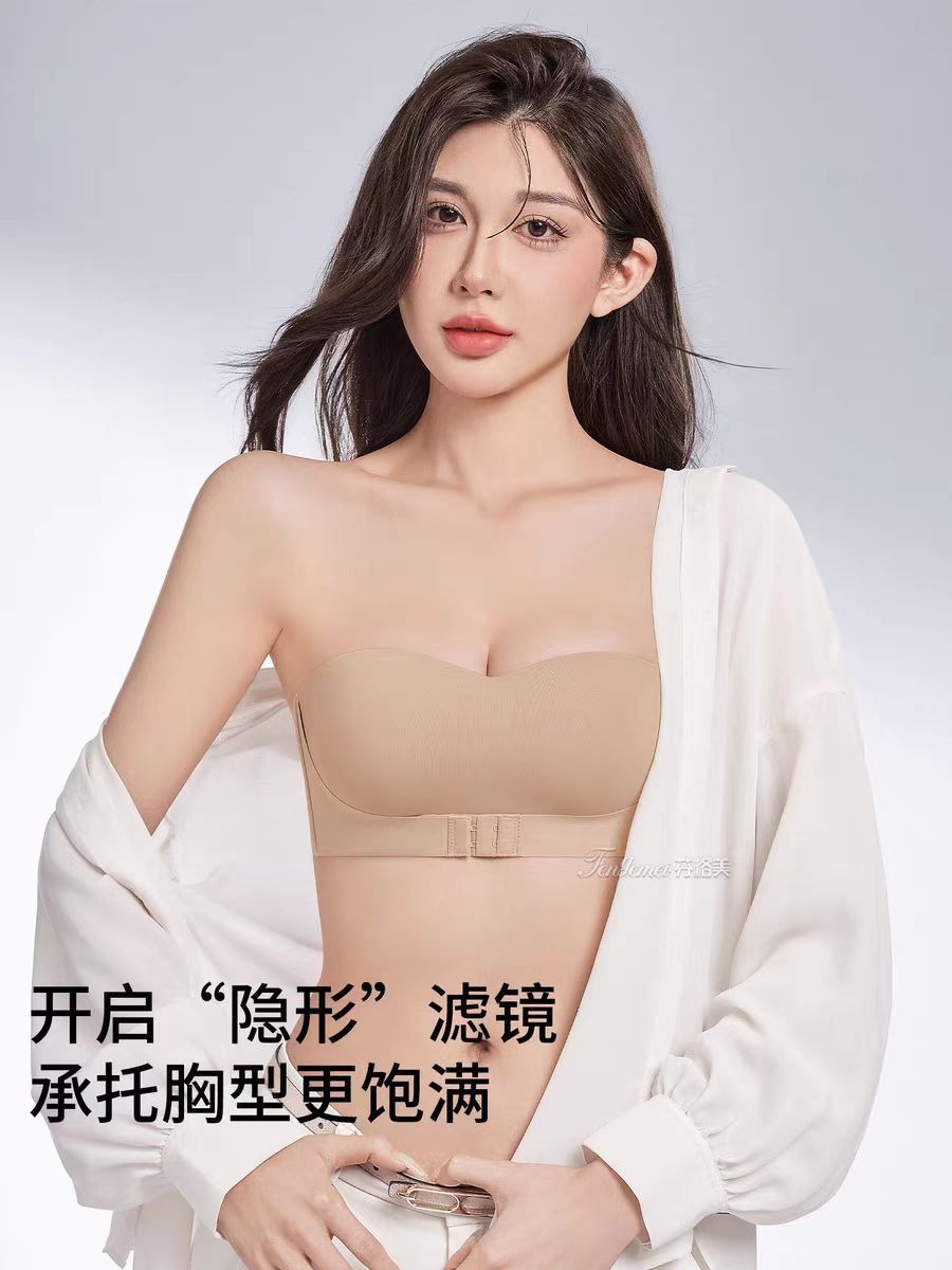 여성용 오리지널 스트랩리스 속옷, 푸쉬업, 미끄럼 방지, 작은 가슴이 더 커 보이고 노출 방지, 튜브탑, 투명 브라, 심리스 젤리