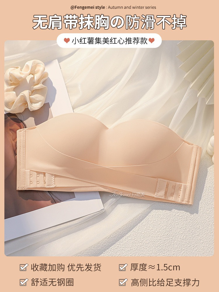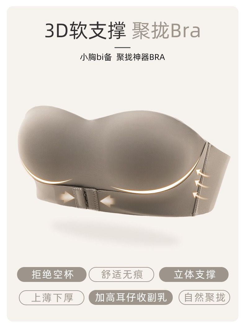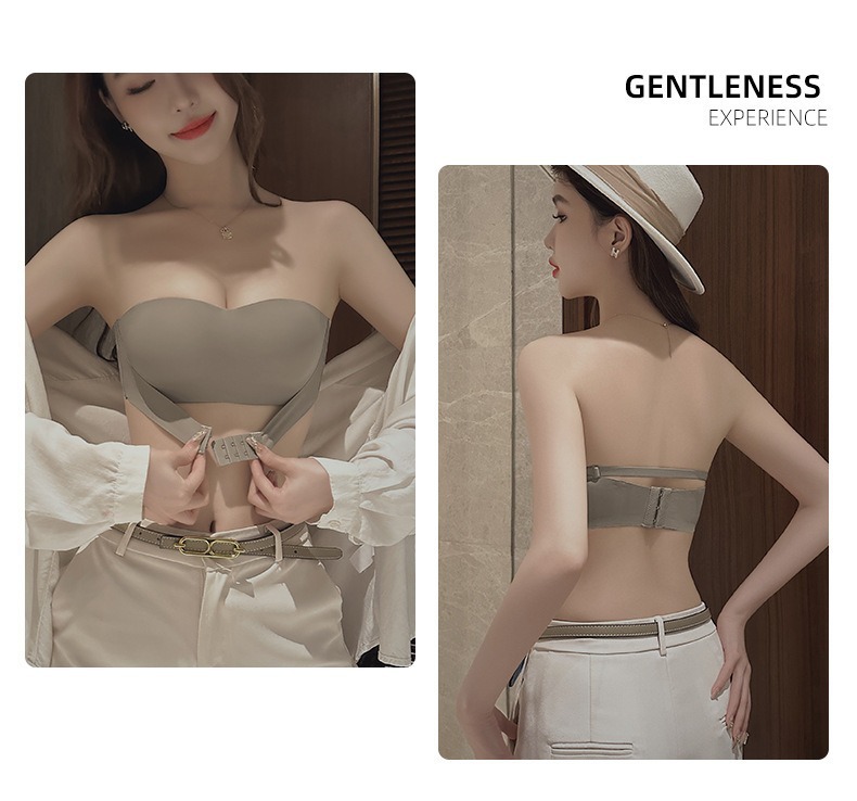 여성용 오리지널 스트랩리스 속옷, 푸쉬업, 미끄럼 방지, 작은 가슴이 더 커 보이고 노출 방지, 튜브탑, 투명 브라, 심리스 젤리스토어 가기