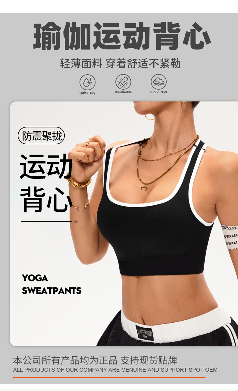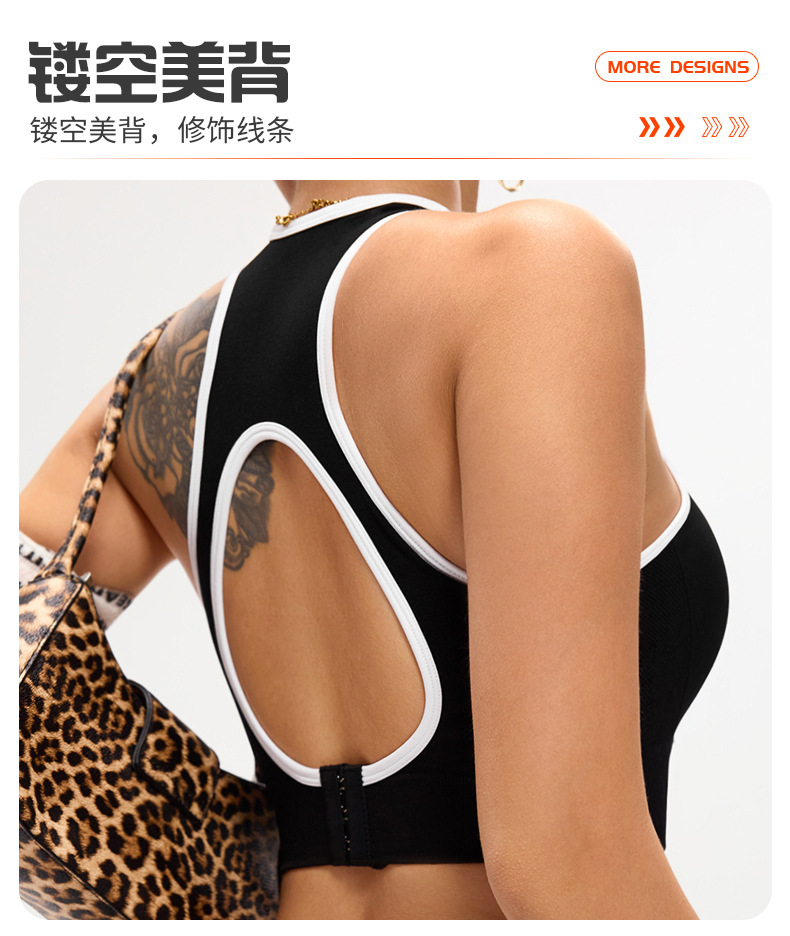 유럽과 미국의 대비 색상, 와이어 없음, 속이 빈 아름다운 등 스포츠 브라, 여성용 피트니스 러닝 충격 방지 푸시업 스포츠 브라스토어 가기