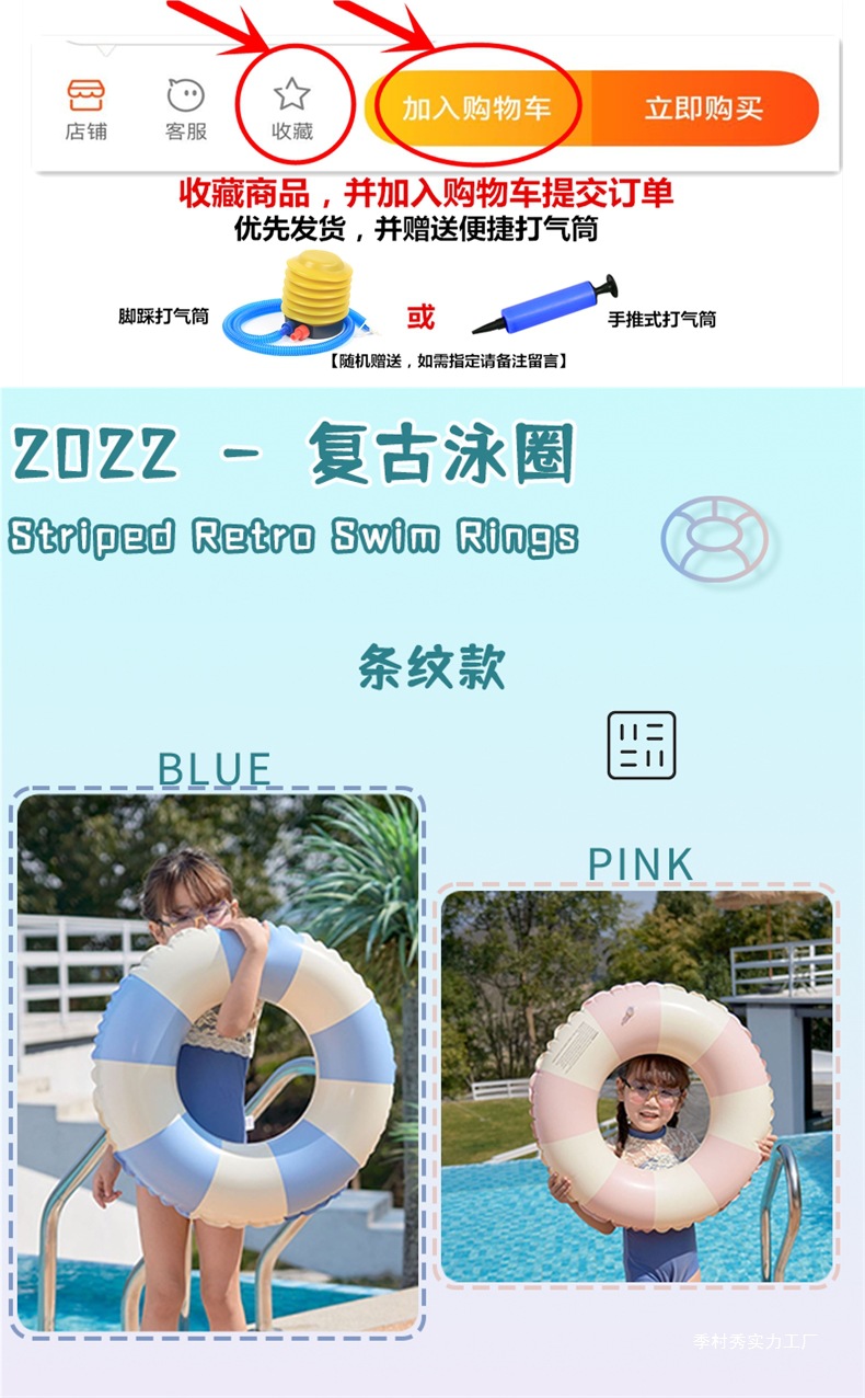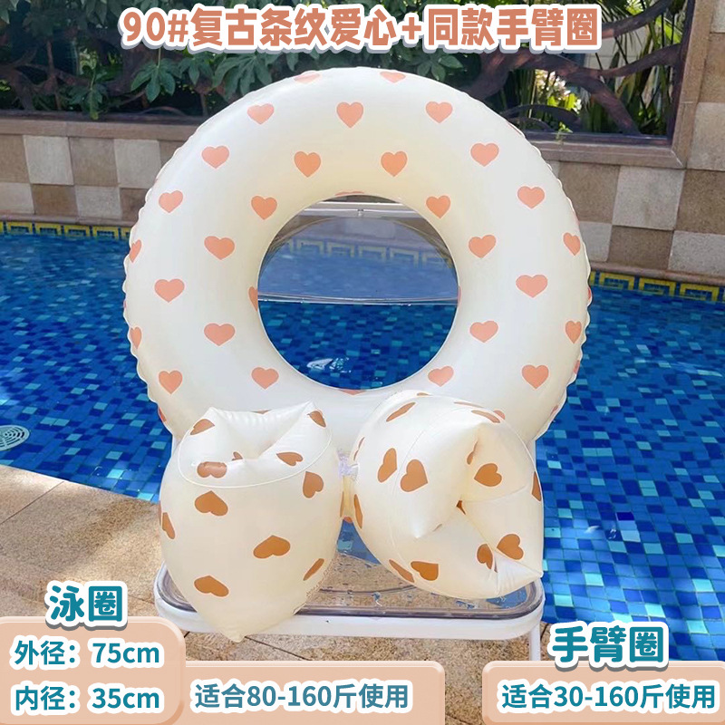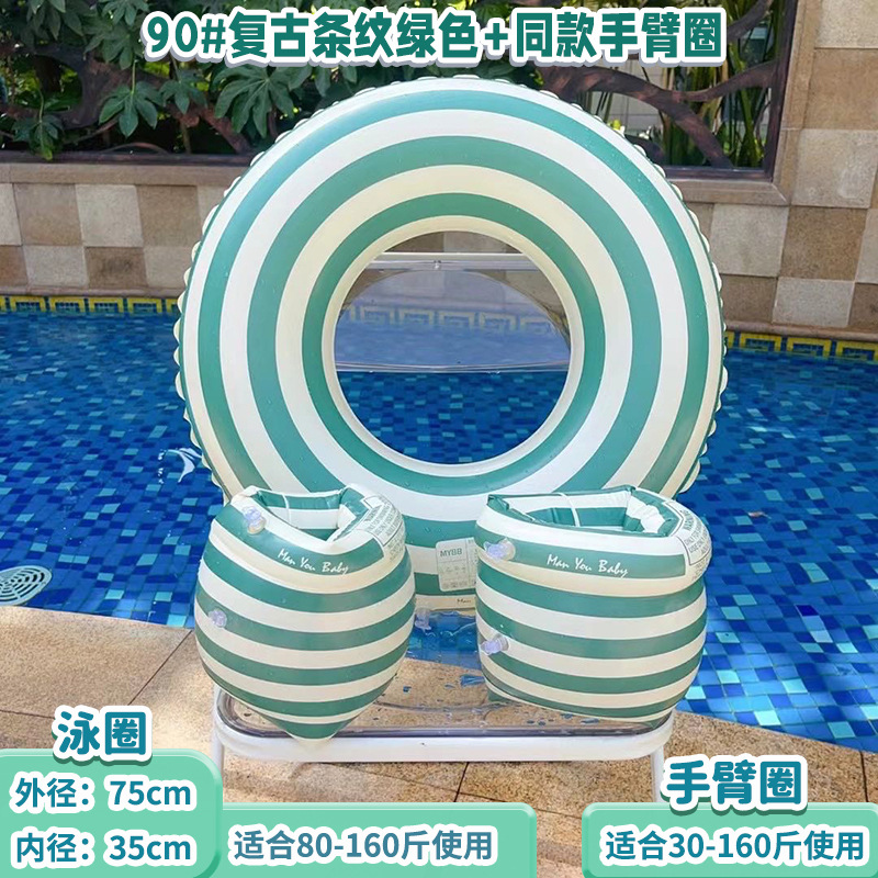 Ins 두꺼운 성인과 어린이 덴마크어 복고풍 줄무늬 수영 반지 올리브 풍선 아기 겨드랑이 반지 체리 시즌스토어 가기