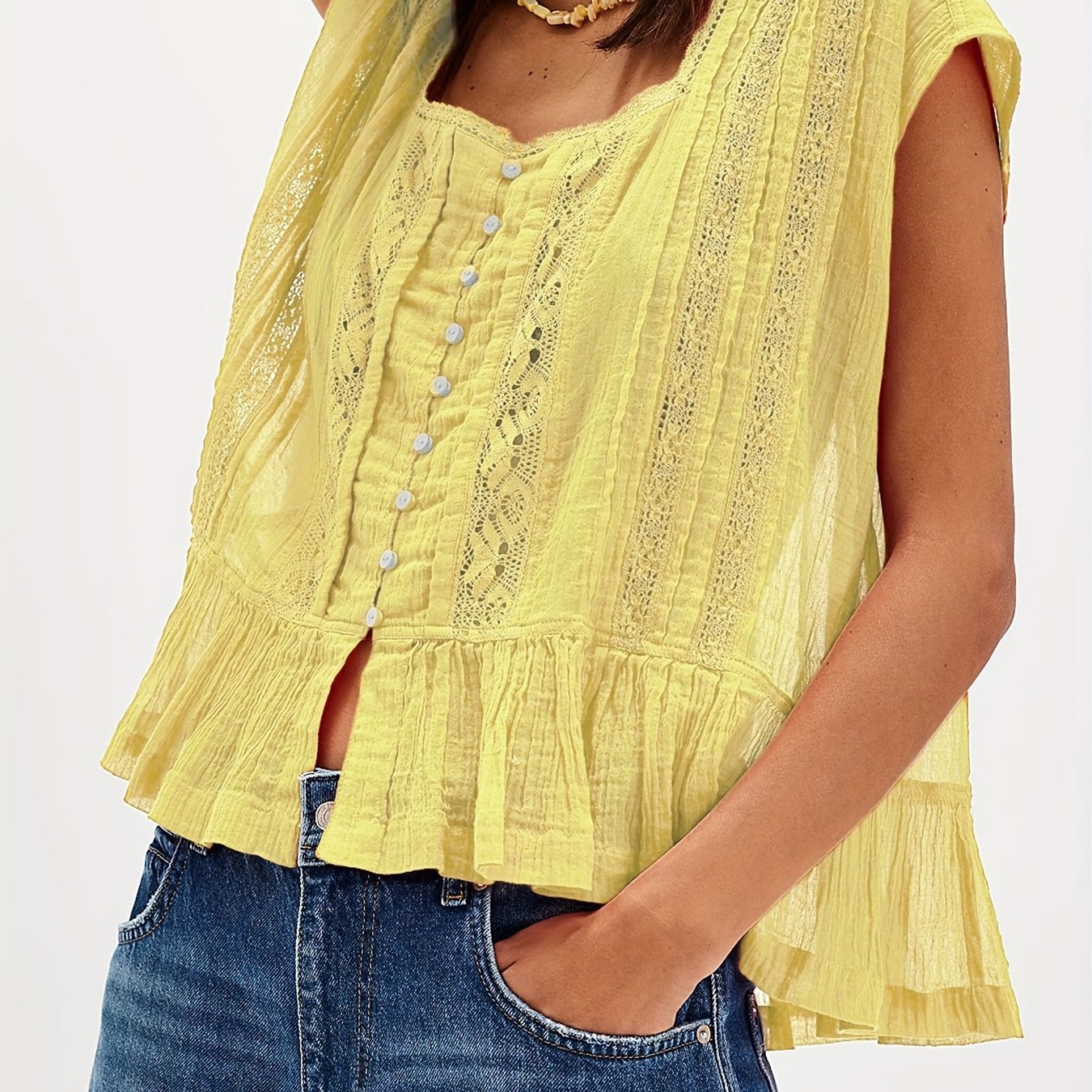 여성용 시크 팔꿈치 길이 슬리브 여름 탑 스퀘어 넥 크로스보더