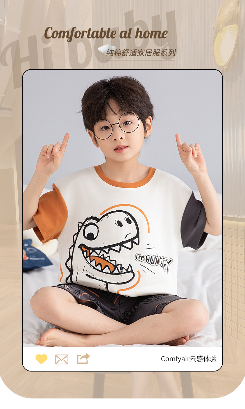 한국 스타일 소년 잠옷 여름 반팔 반바지 순수 코튼 소년 소년 중대형 어린이 만화 가정 의류 아동복