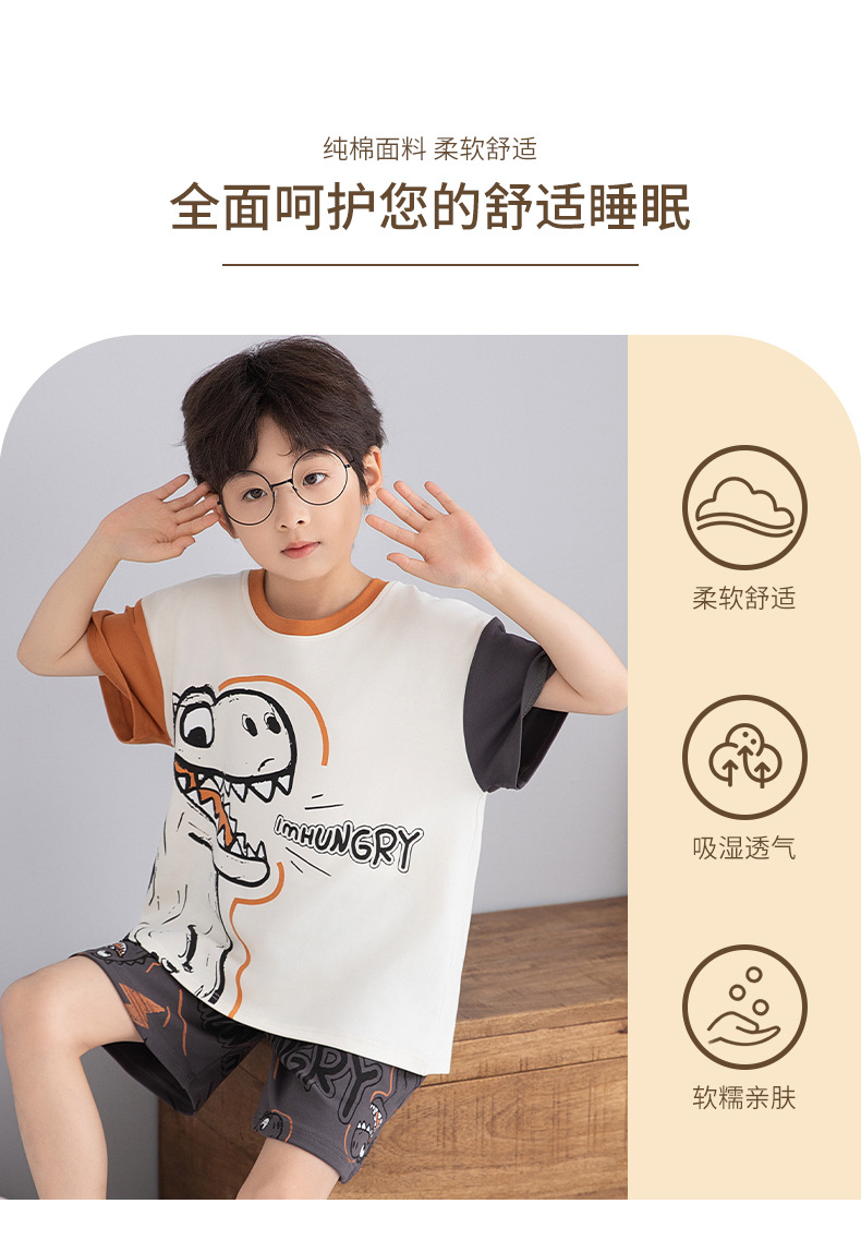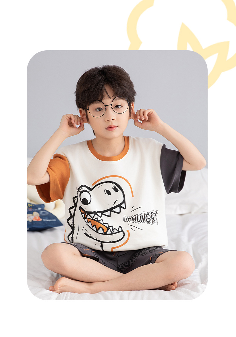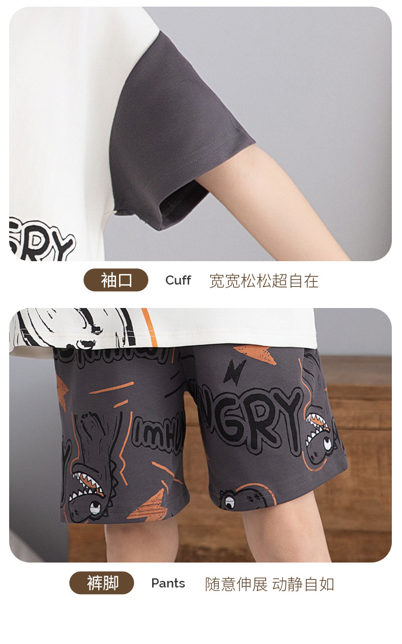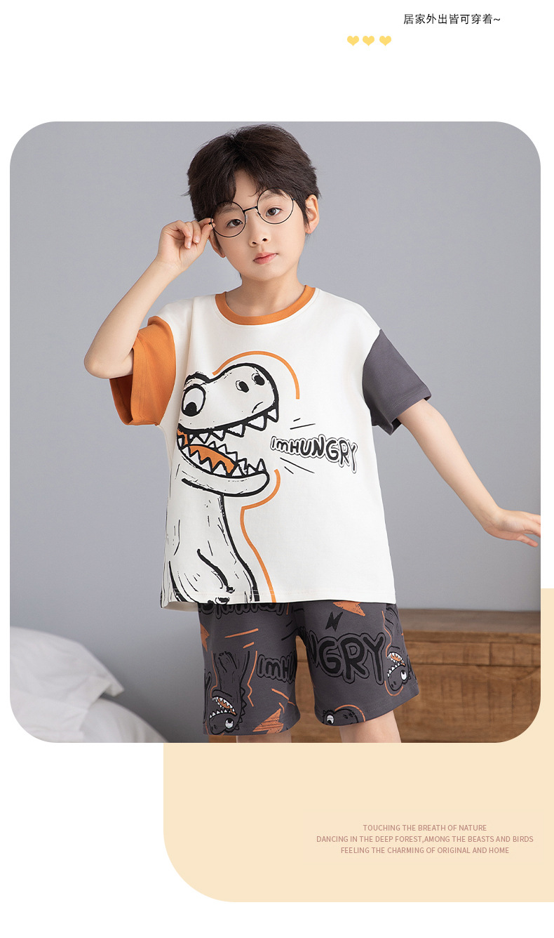 한국 스타일 소년 잠옷 여름 반팔 반바지 순수 코튼 소년 소년 중대형 어린이 만화 가정 의류 아동복스토어 가기