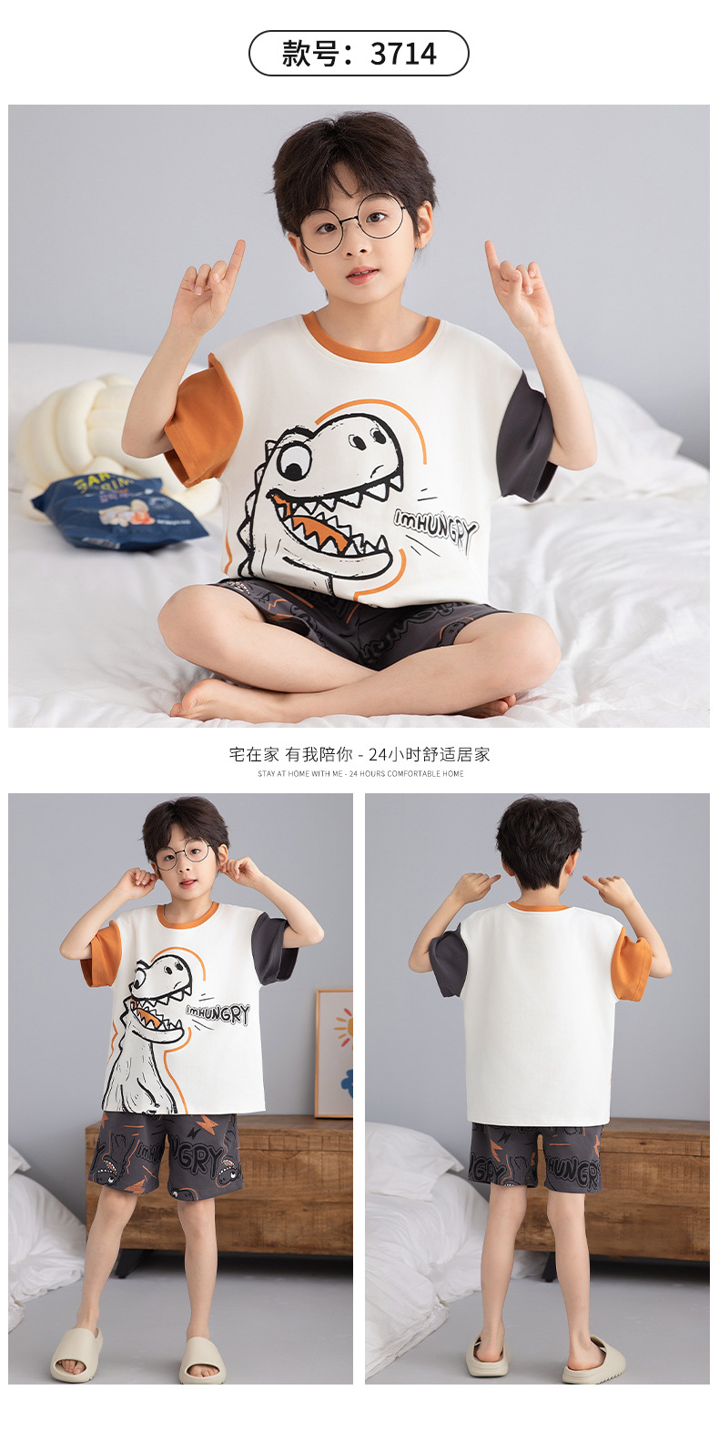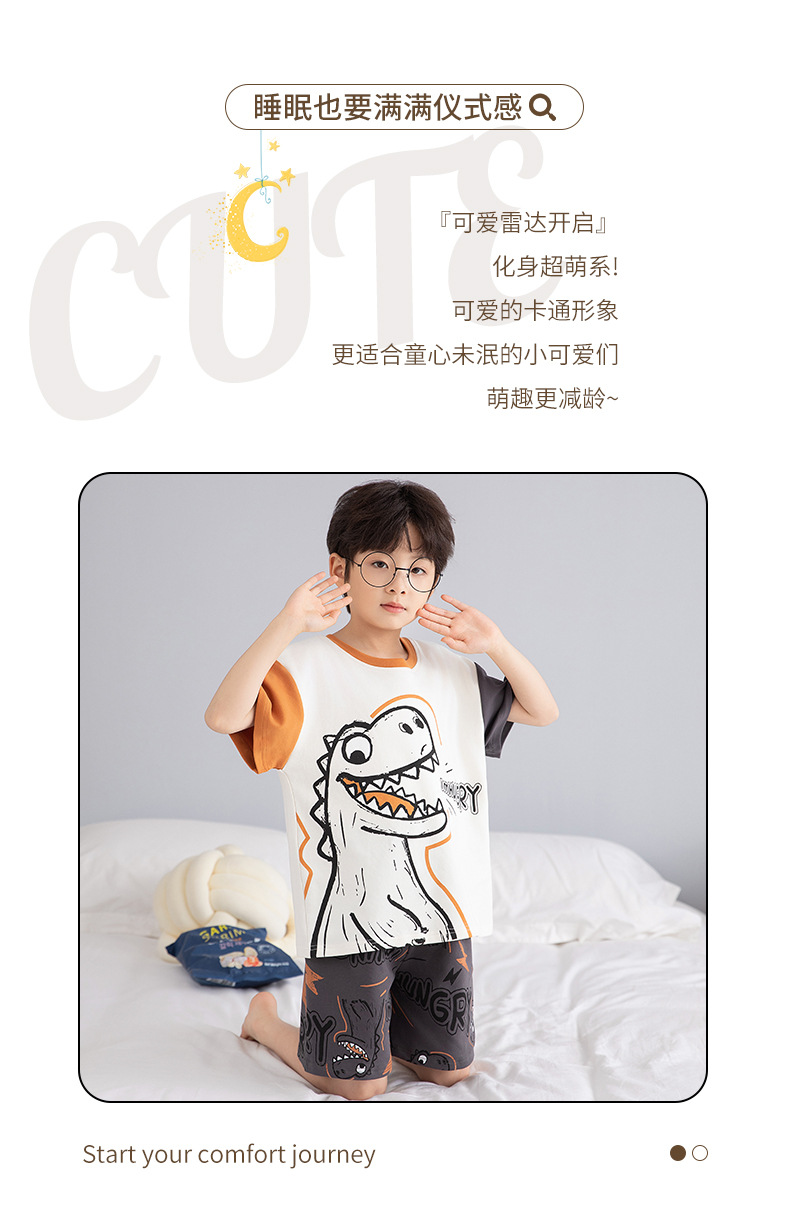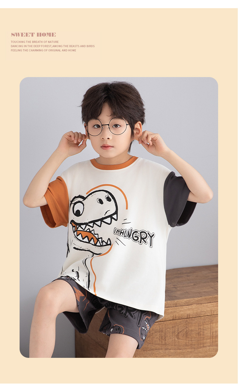 한국 스타일 소년 잠옷 여름 반팔 반바지 순수 코튼 소년 소년 중대형 어린이 만화 가정 의류 아동복스토어 가기