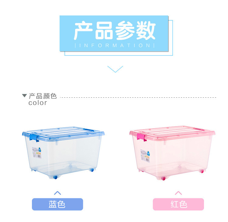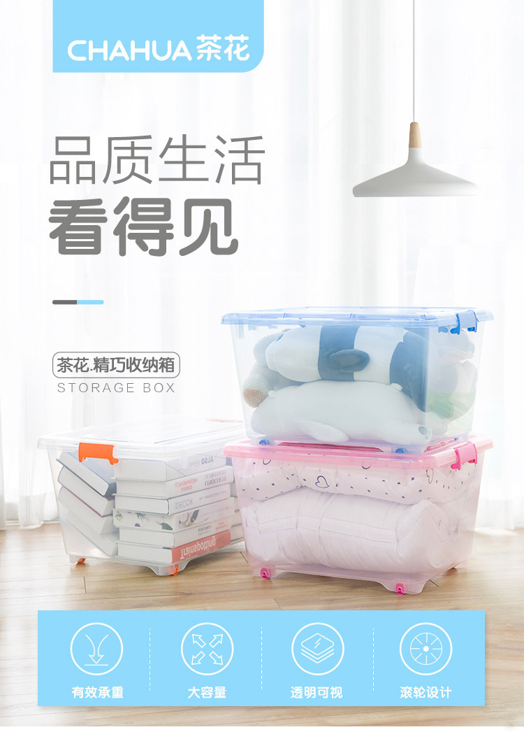 동백 플라스틱 보관 상자 어린이 장난감 의류 보관 상자 도르래가있는 대형 보관 상자 투명 보관 상자
