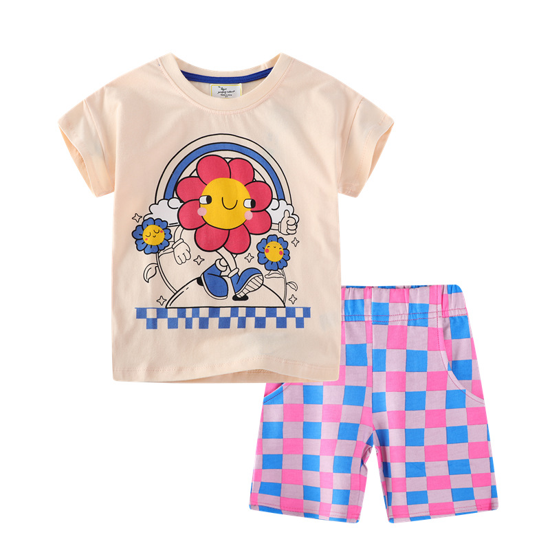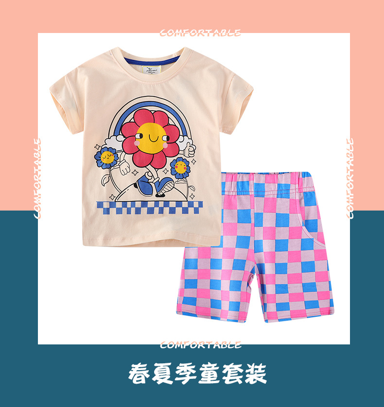 국경 간 여름 아동복, 유럽과 미국의 어린이를 위한 라운드 넥 티셔츠 세트, 남아용 투피스 세트, 멋진 아동복스토어 가기
