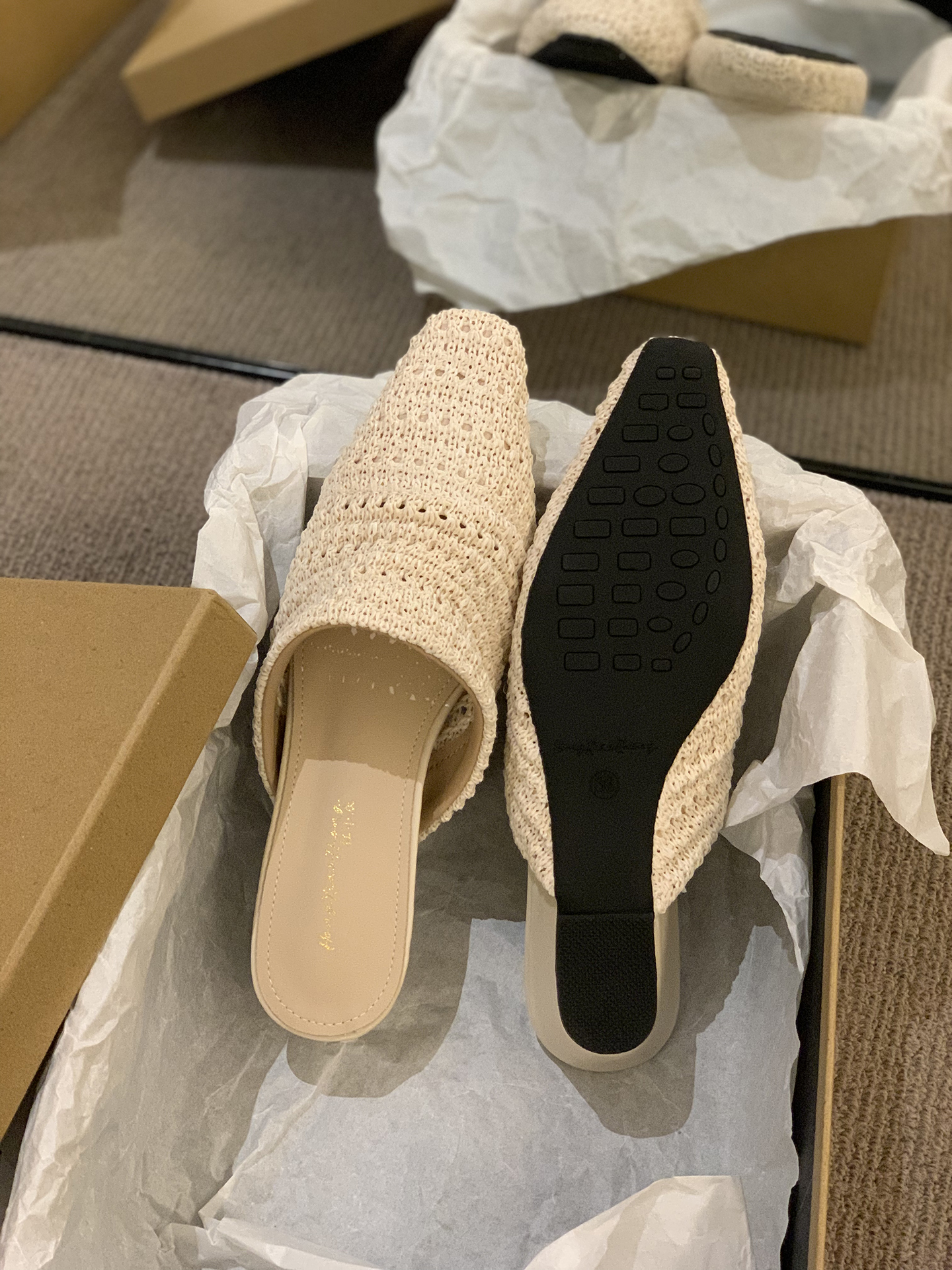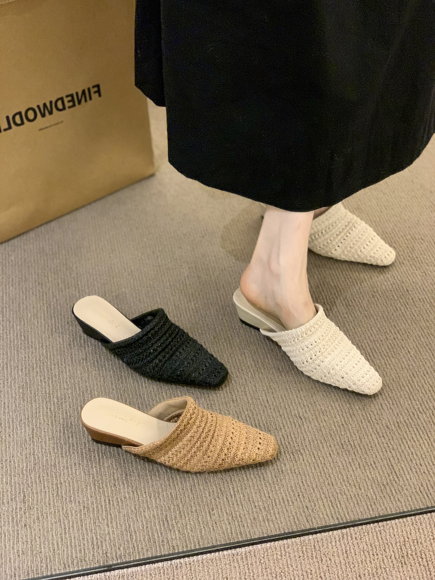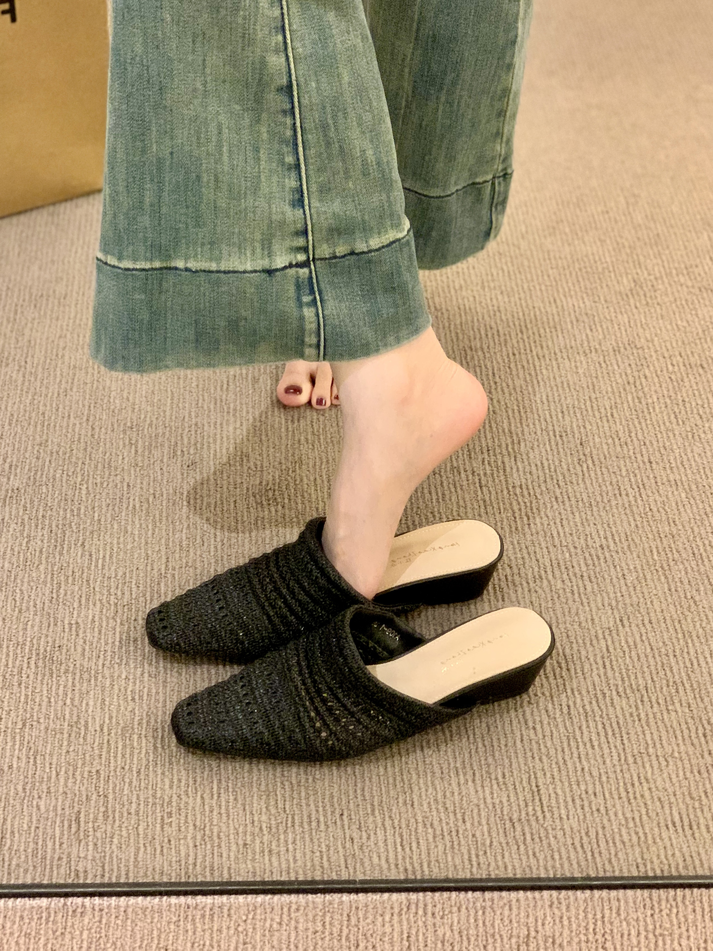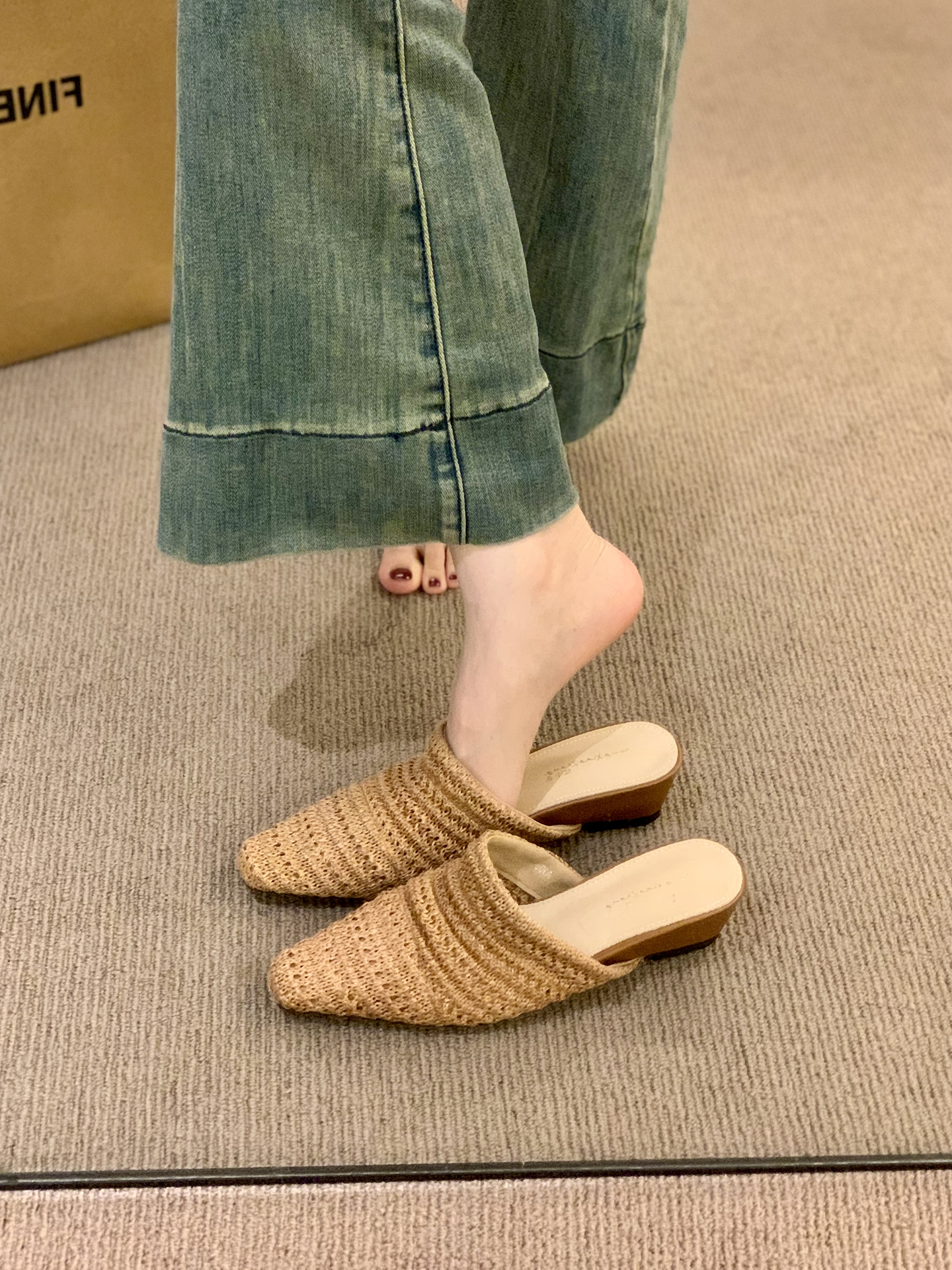 여성용 웨지 토우 하프 슬리퍼, 2025년 신상 여름 복고풍 직조 리조트 스타일 뮬 샌들