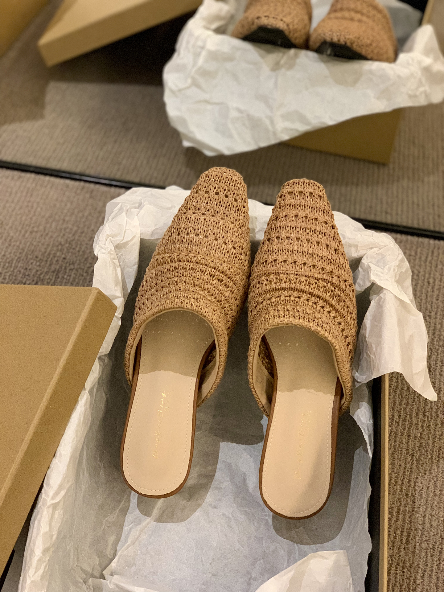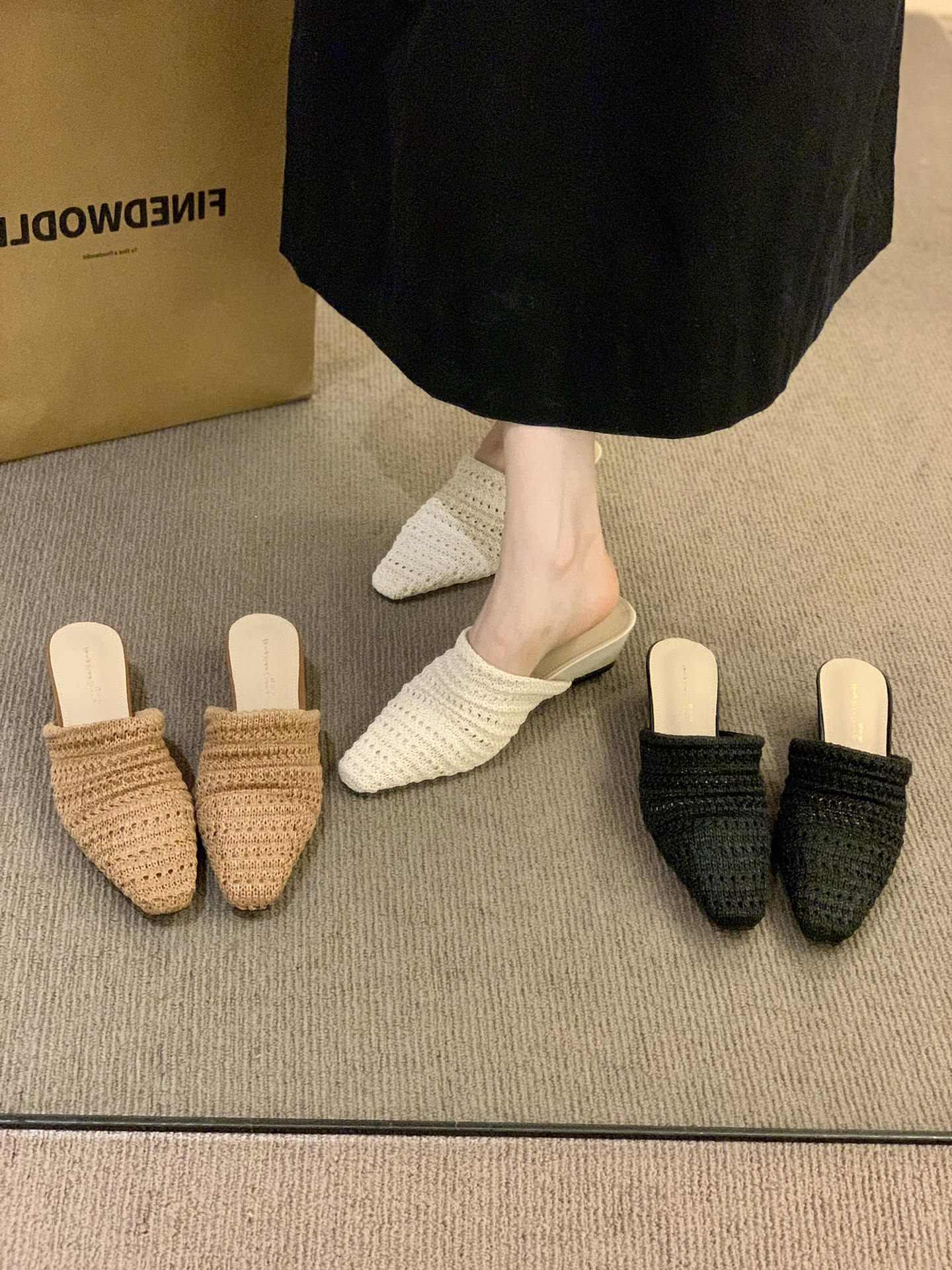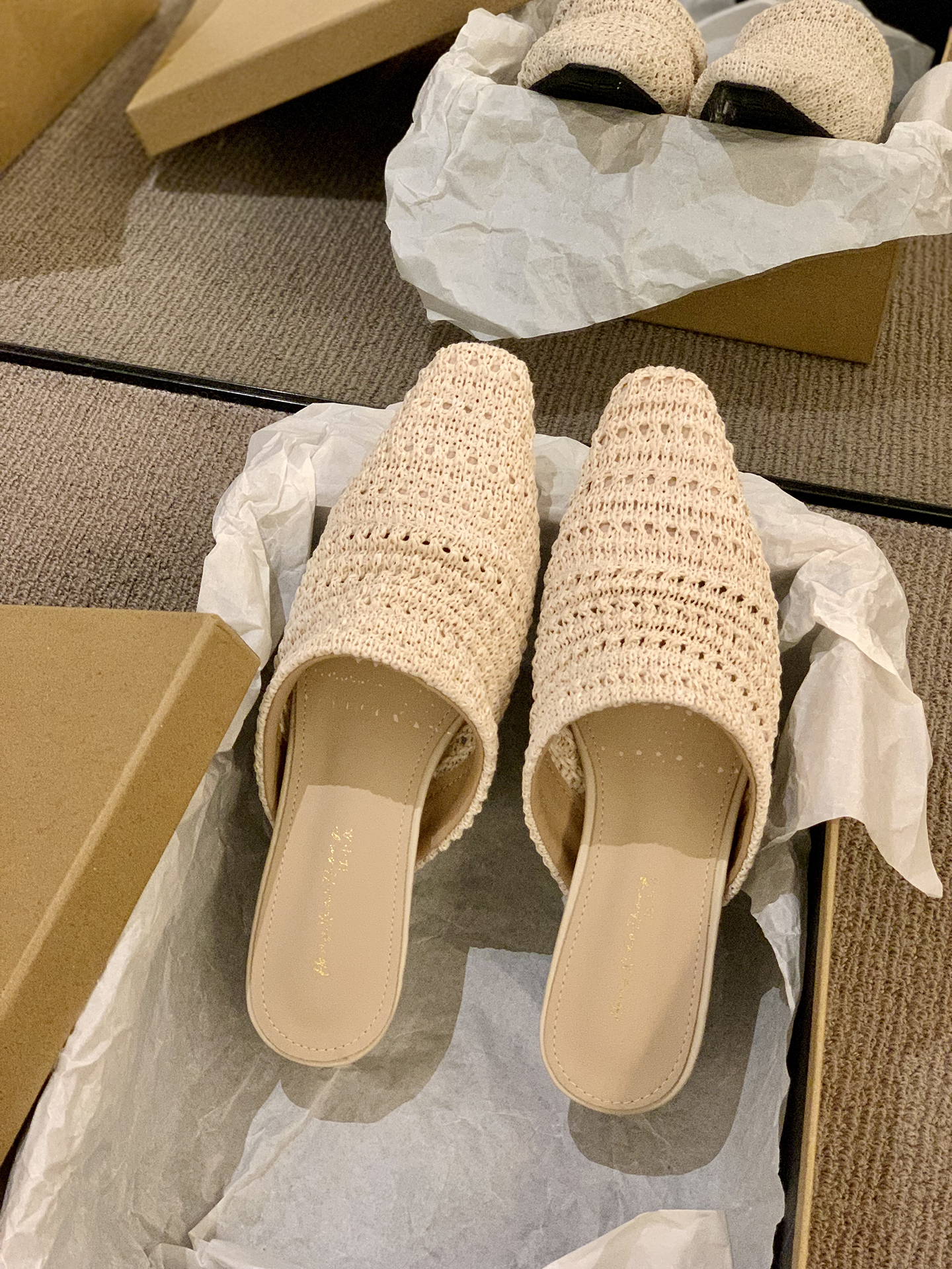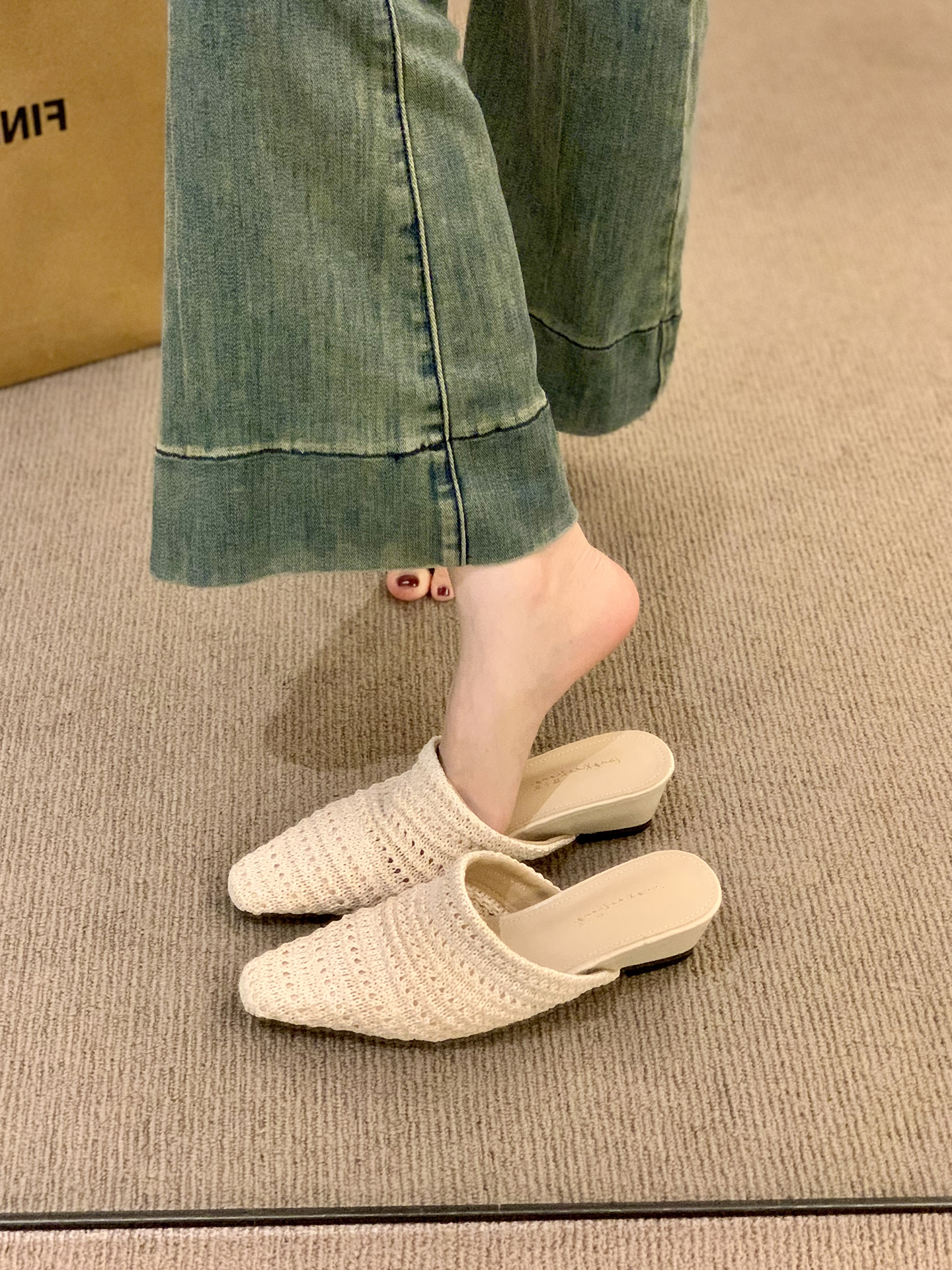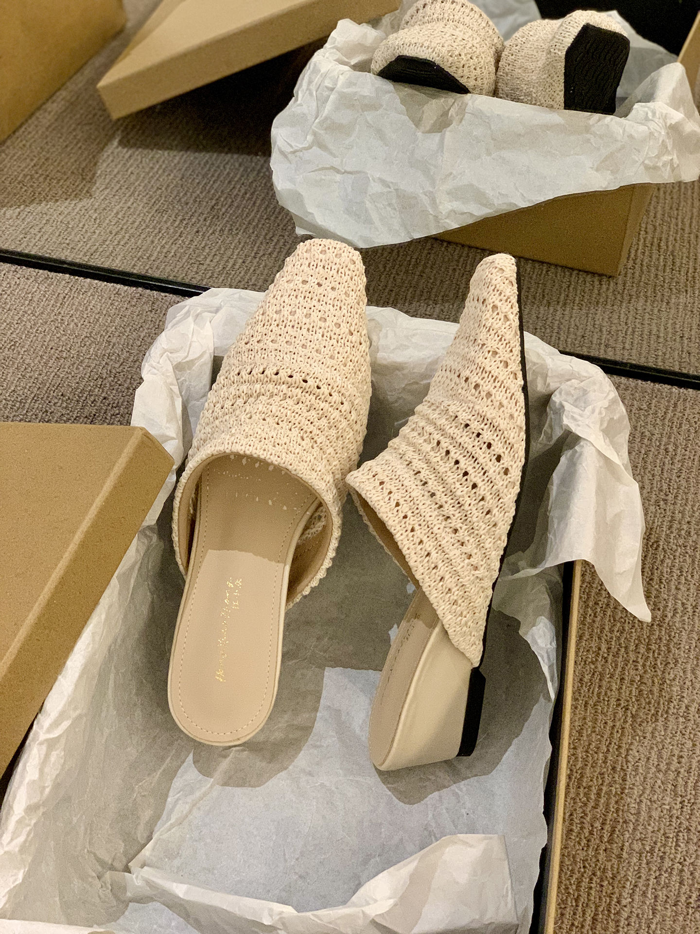 여성용 웨지 토우 하프 슬리퍼, 2025년 신상 여름 복고풍 직조 리조트 스타일 뮬 샌들