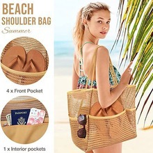 새로운 국경 간 해변 가방 여성 휴대용 대용량 메쉬 가방 야외 여행 어깨 해변 세면 용품 보관 가방스토어 가기