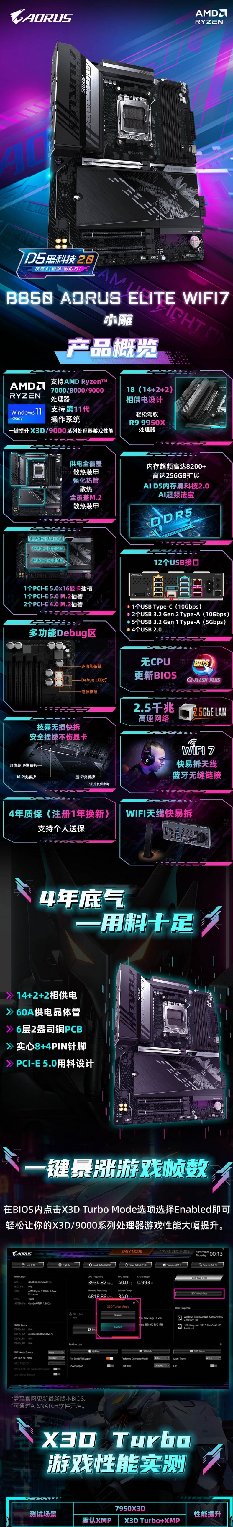 Gigabyte B850 AORUS ELITE WIFI7 소형 조각 마더보드 대형 보드는 9600X/9700X/9950X에 적합합니다.스토어 가기