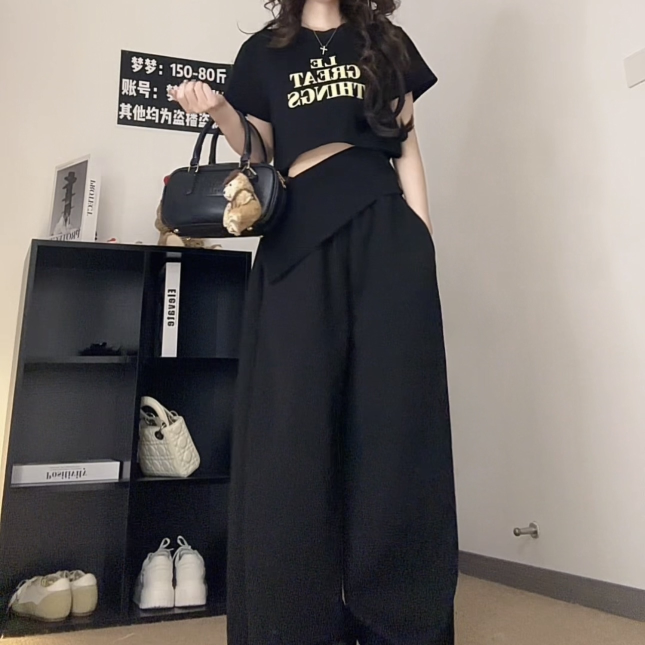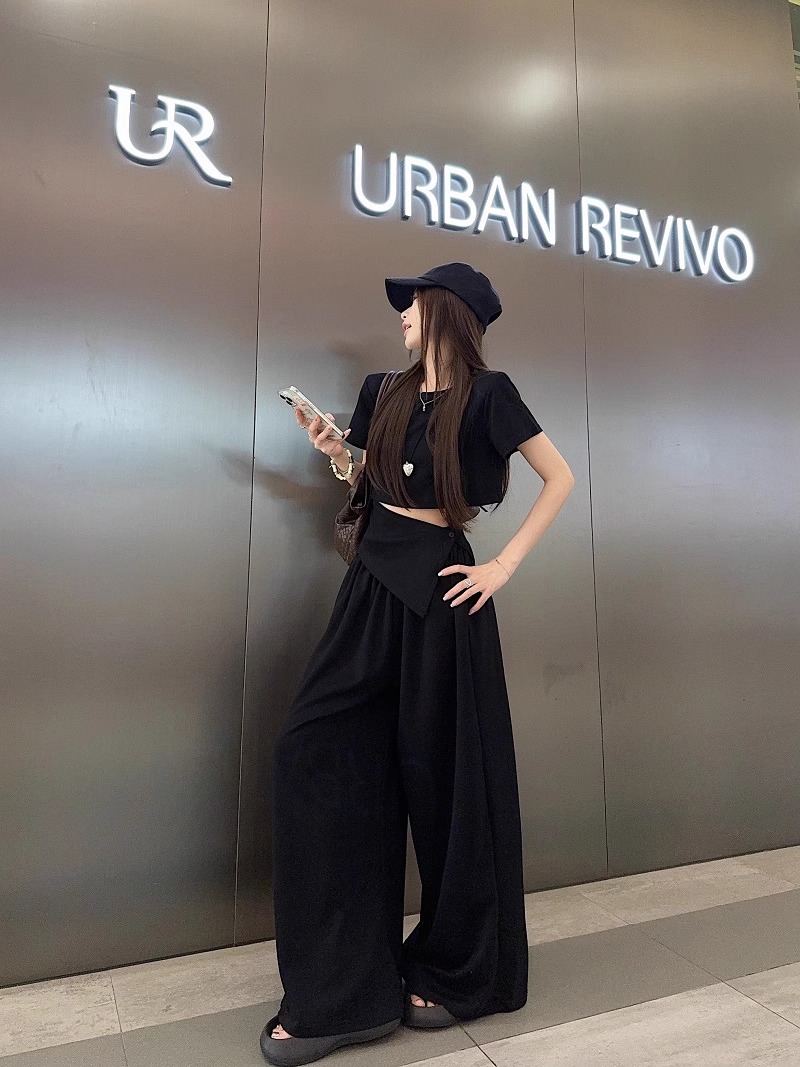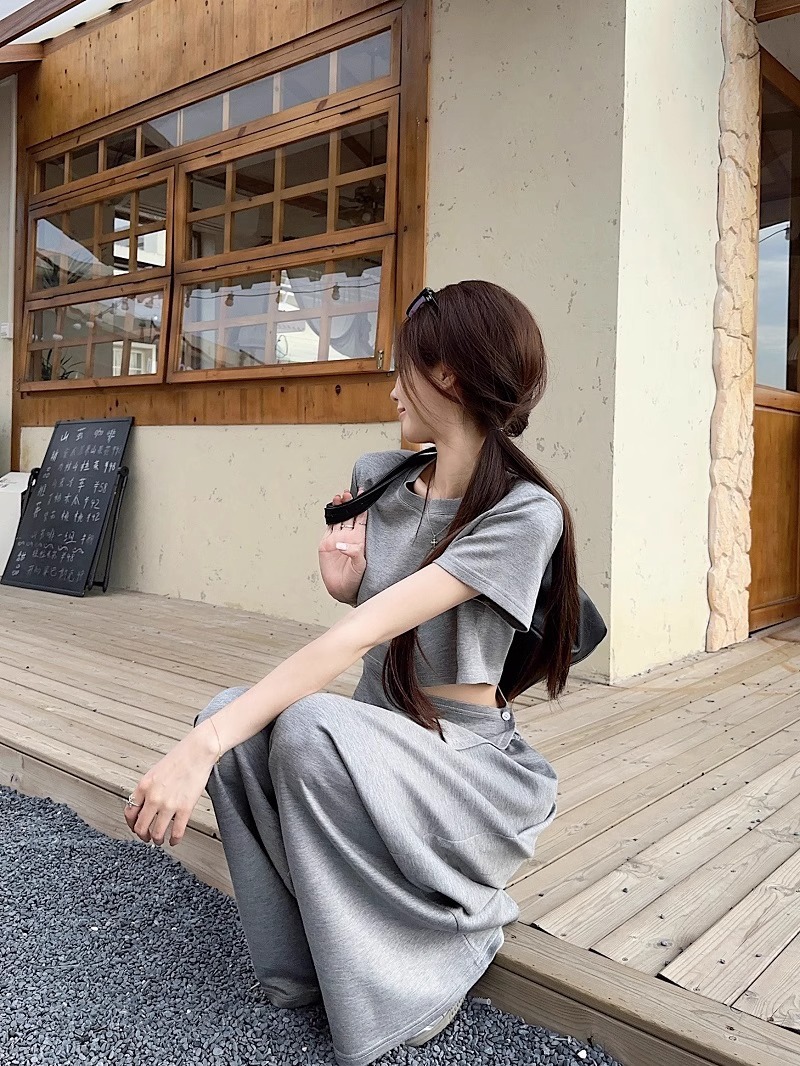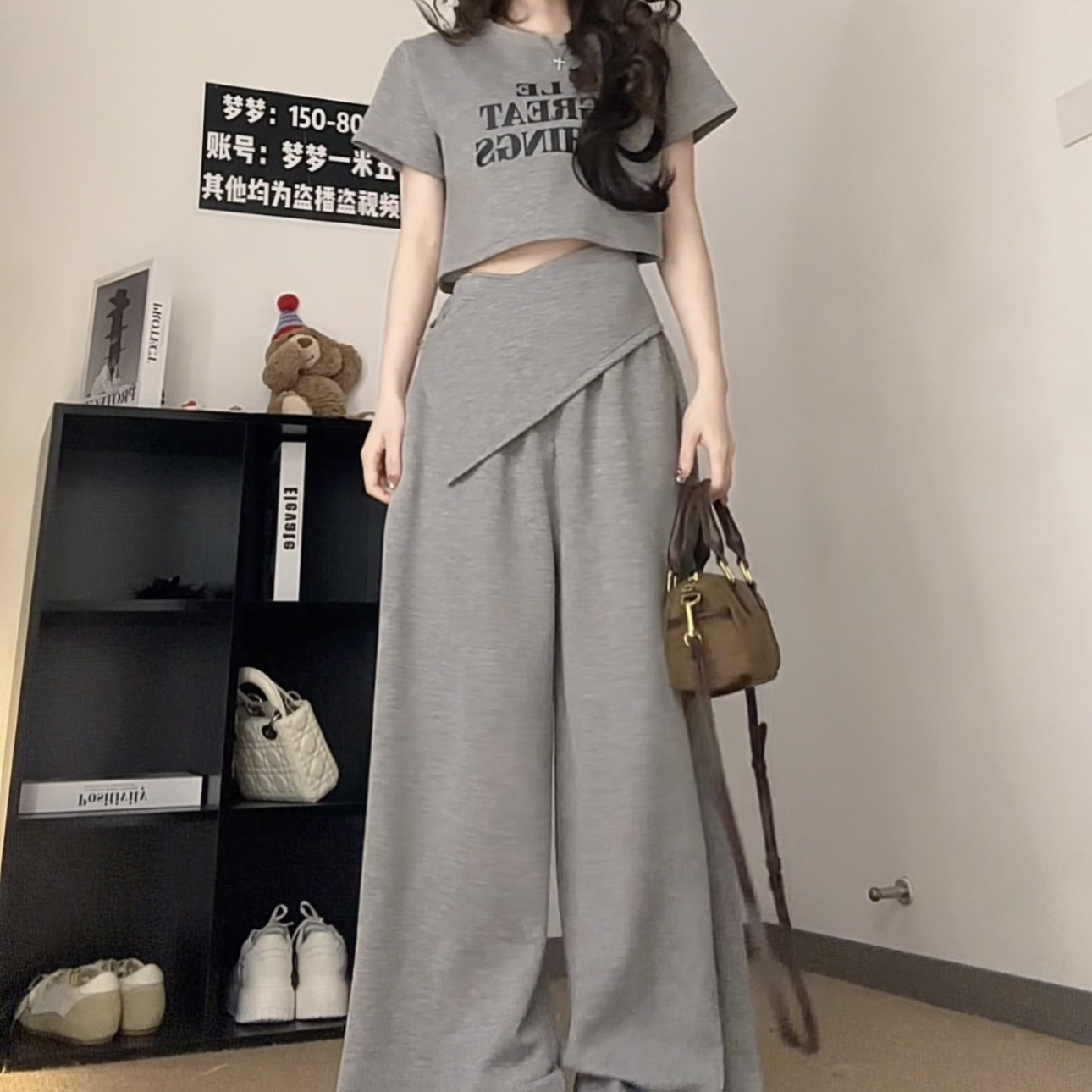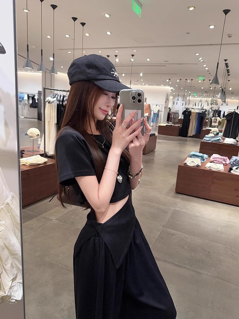 핫 소녀 패션 정장 여성 2025 여름 새로운 높은 허리 슬림 캐주얼 탑 티셔츠 느슨한 와이드 레그 바지 정장스토어 가기