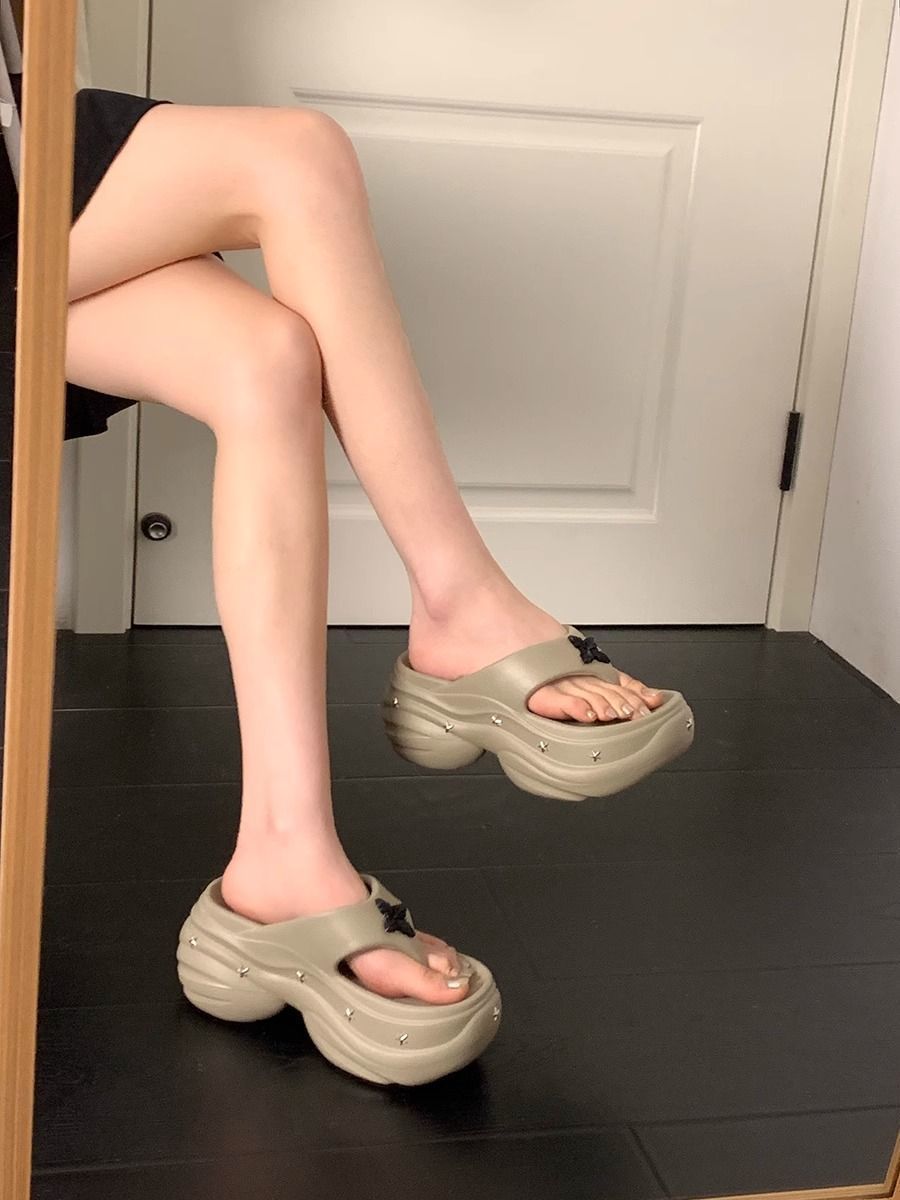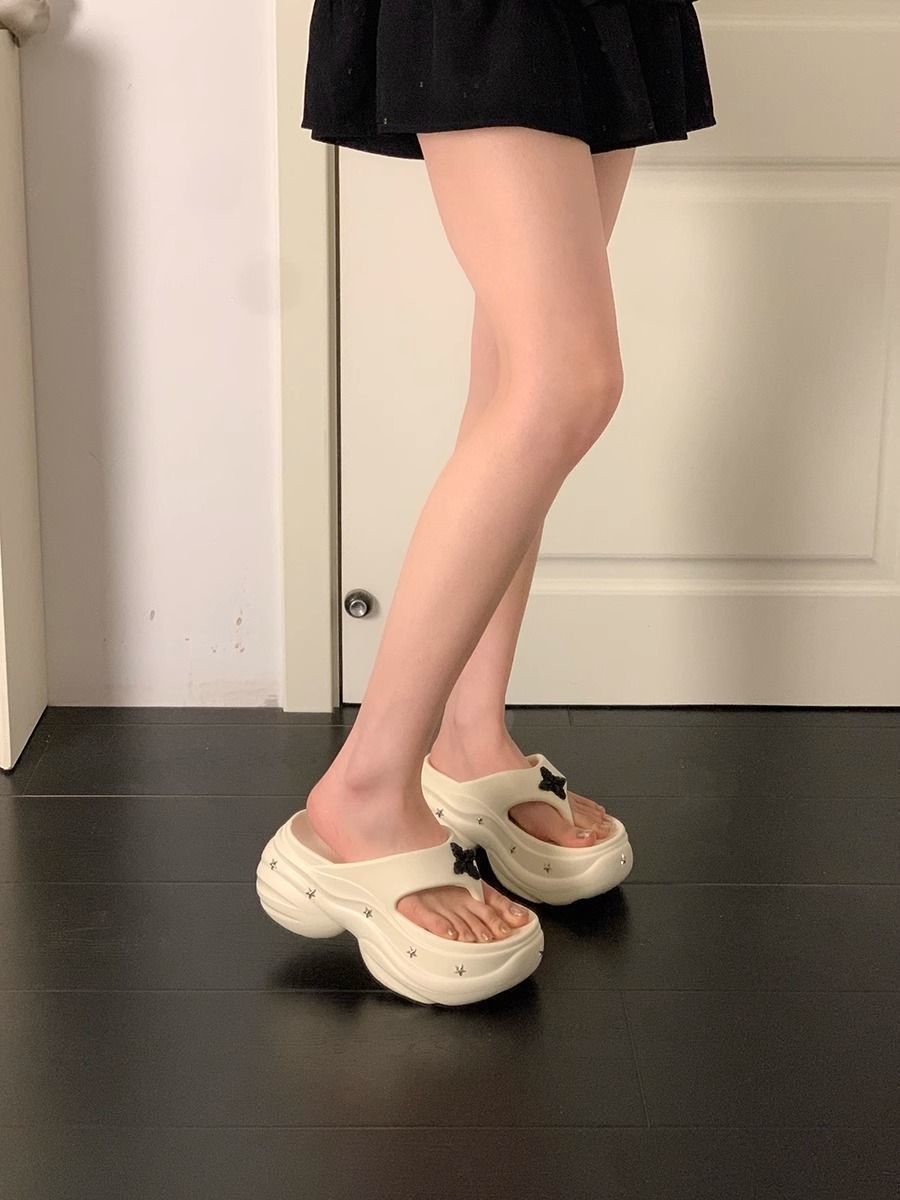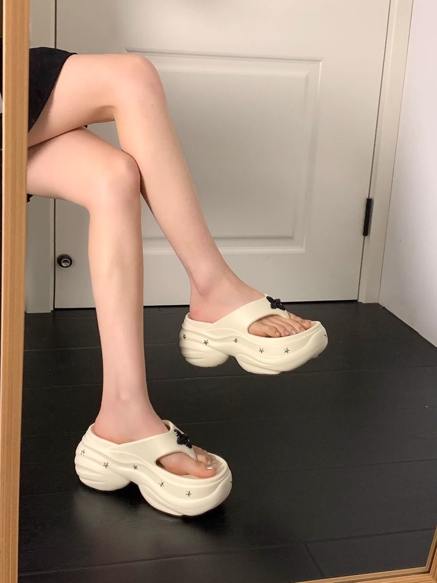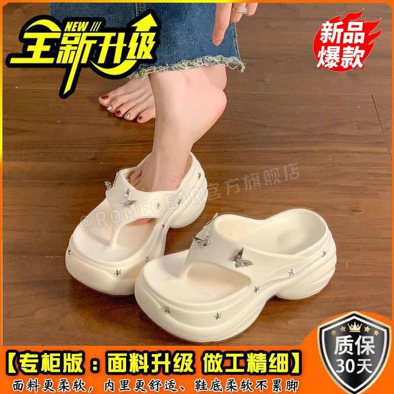몸집이 작은 여성을 위한 키가 큰 흰색 슬리퍼 2025년 여름 신상 아우터웨어 웨지힐 두꺼운 밑창 해변 비치 샌들스토어 가기