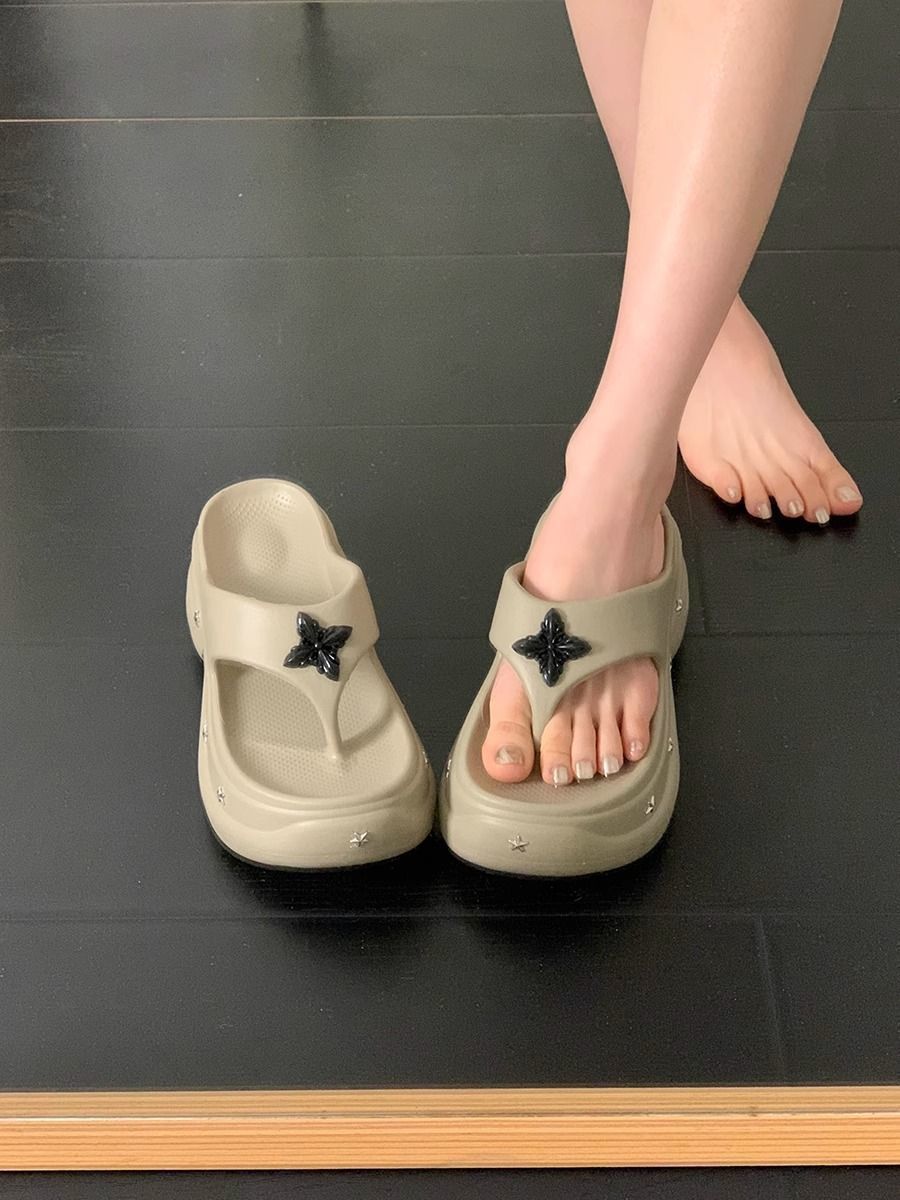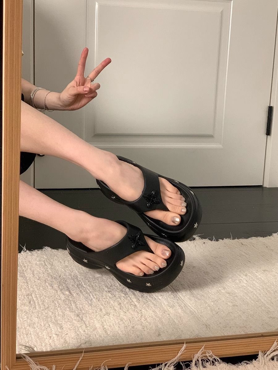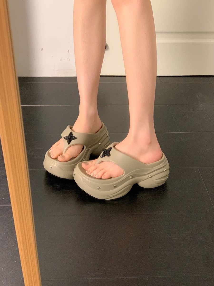 몸집이 작은 여성을 위한 키가 큰 흰색 슬리퍼 2025년 여름 신상 아우터웨어 웨지힐 두꺼운 밑창 해변 비치 샌들스토어 가기