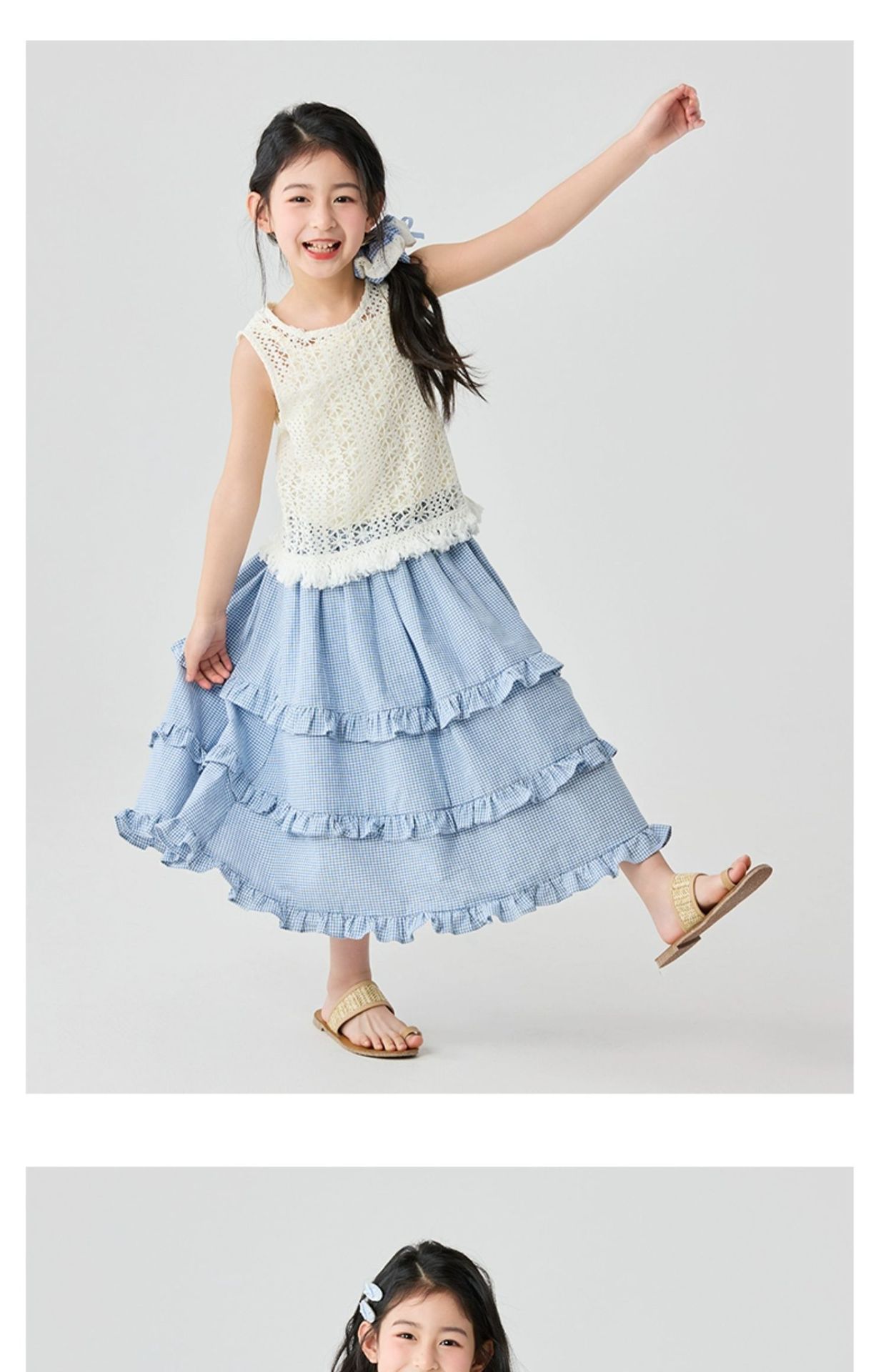 여자 스커트 여름 새로운 어린이 레이스 격자 무늬 스커트 중간 길이 여자 얇은 여름 케이크 스커트