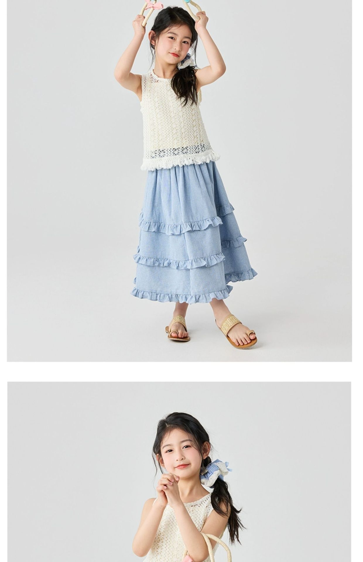 여자 스커트 여름 새로운 어린이 레이스 격자 무늬 스커트 중간 길이 여자 얇은 여름 케이크 스커트스토어 가기