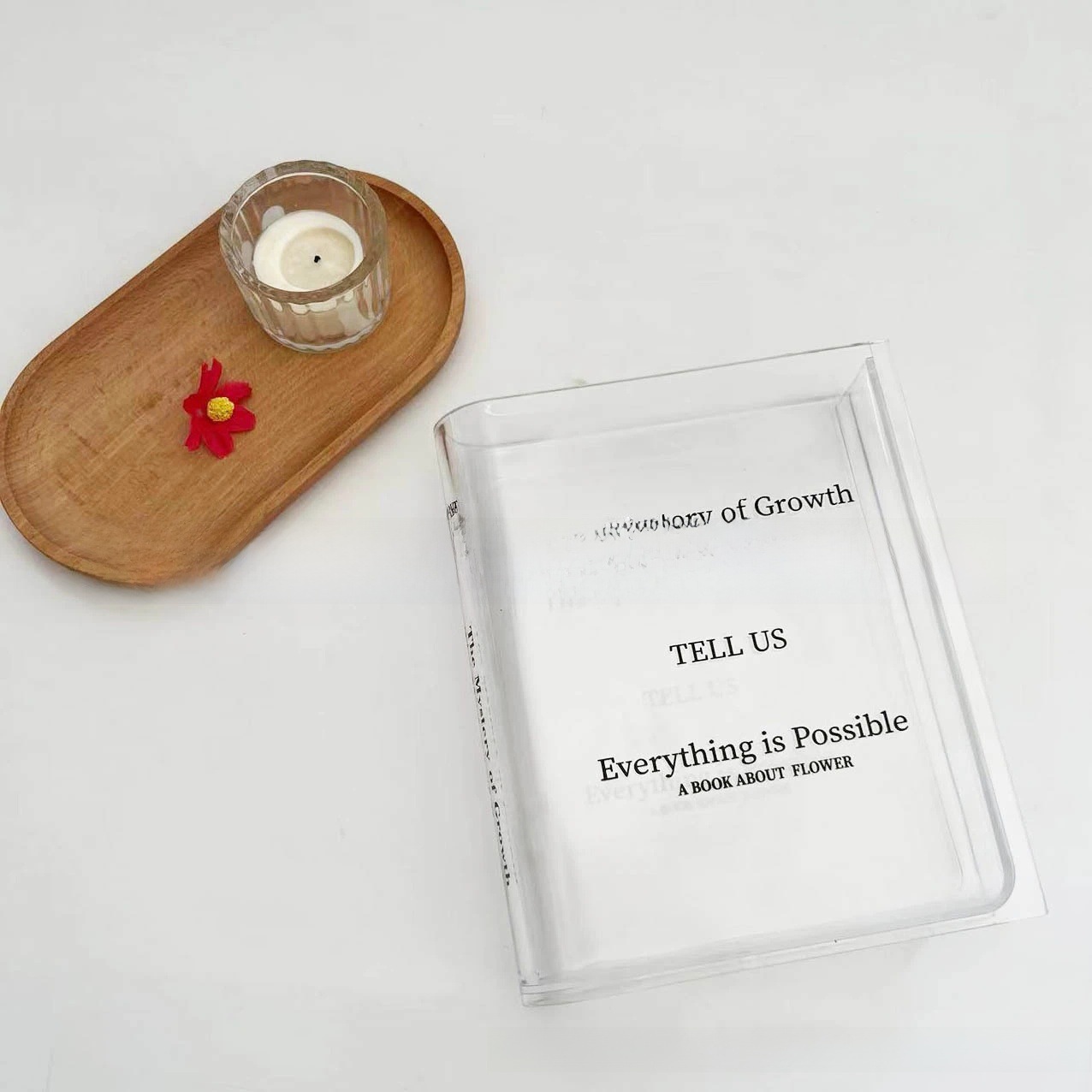 간단한 책 꽃병 고품질 고투명 플렉시 유리 장식품 장식 아크릴 책 꽃병 선물