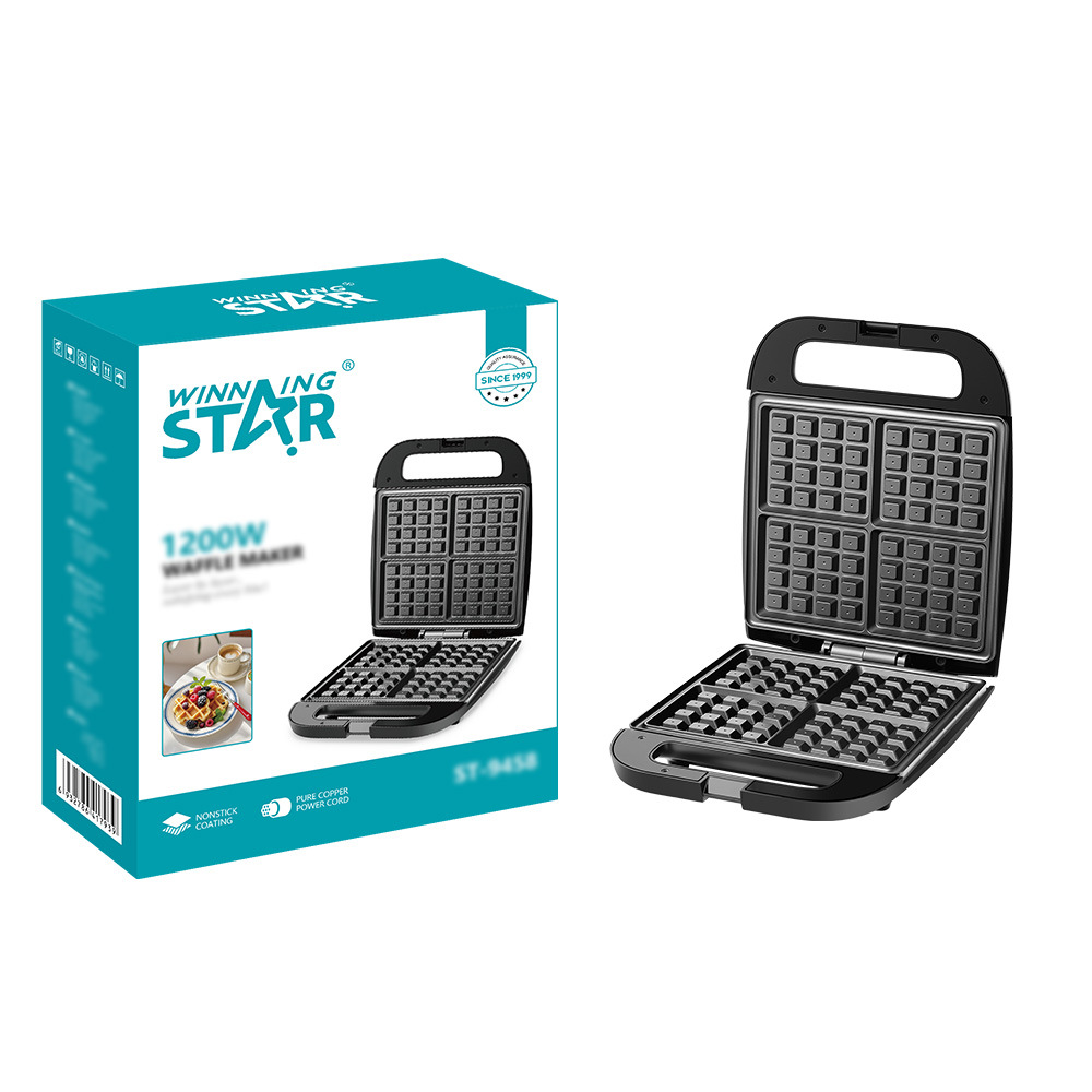 华夫饼机,ST-9458,电压:AC220-240V,功率:1200W,不粘涂层,尺寸:320*252*86mm