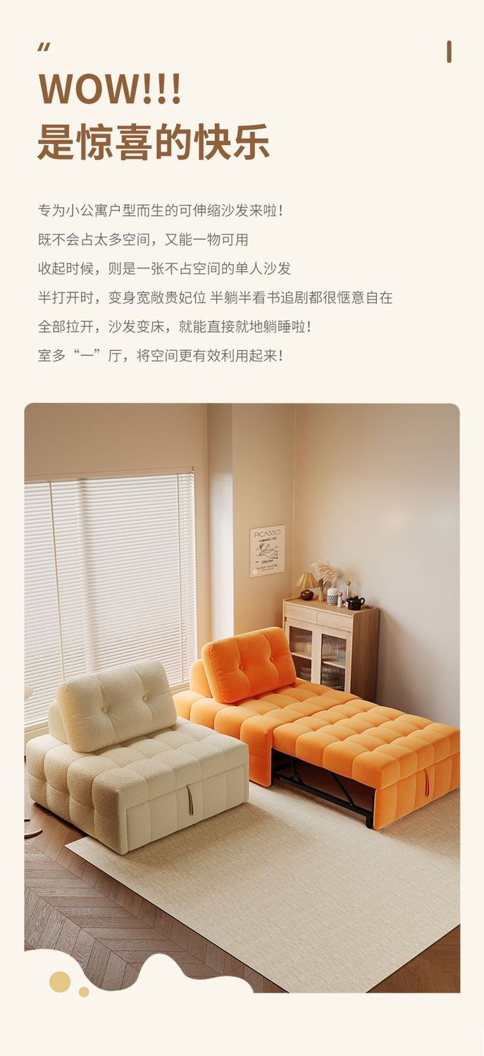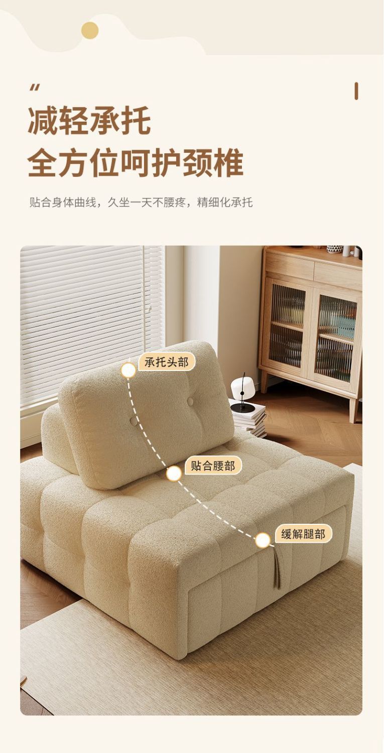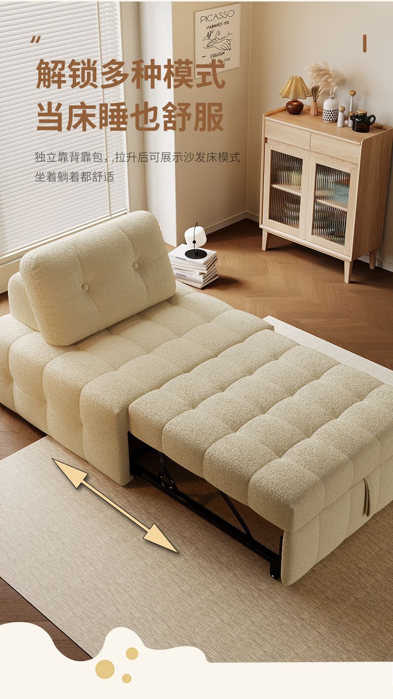 크림 스타일 퍼프 소파 베드, 앉고 누워 다기능 소형 패브릭 거실 접이식 텔레스코픽 싱글 소파스토어 가기