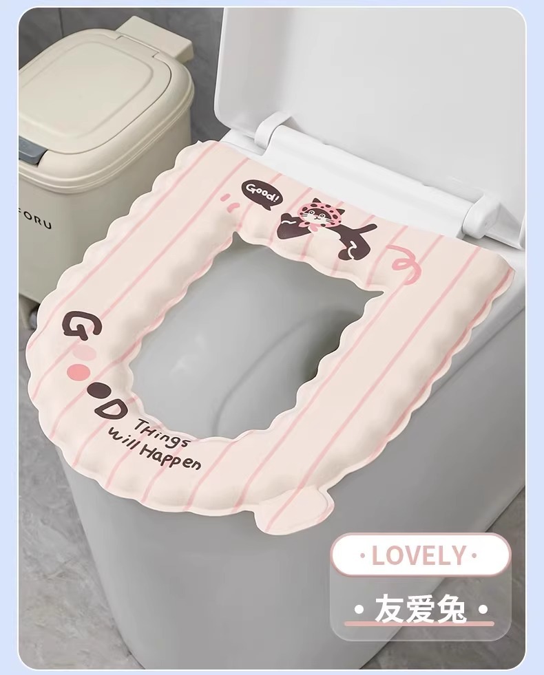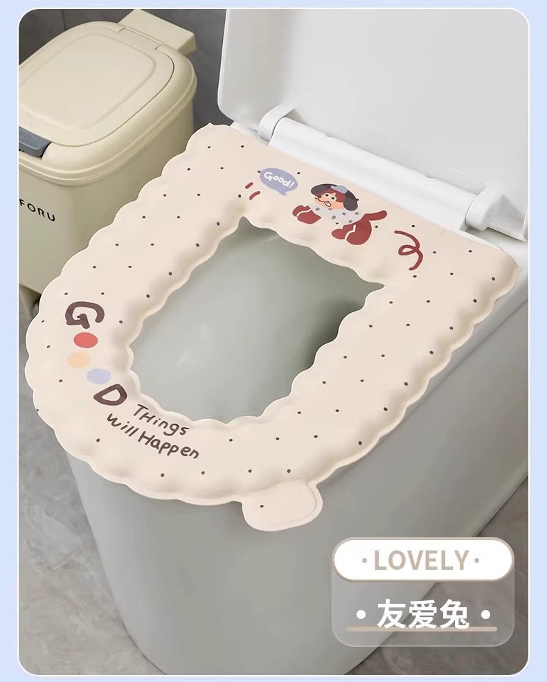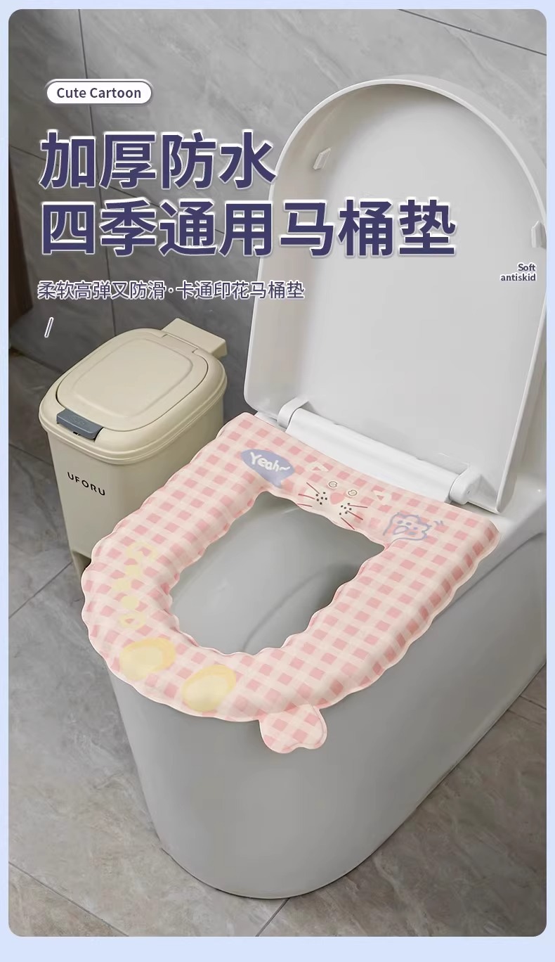 방수 변기 매트 EVA 세탁 가능한 사계절 범용 변기 커버 가정용 접착식 두꺼운 링