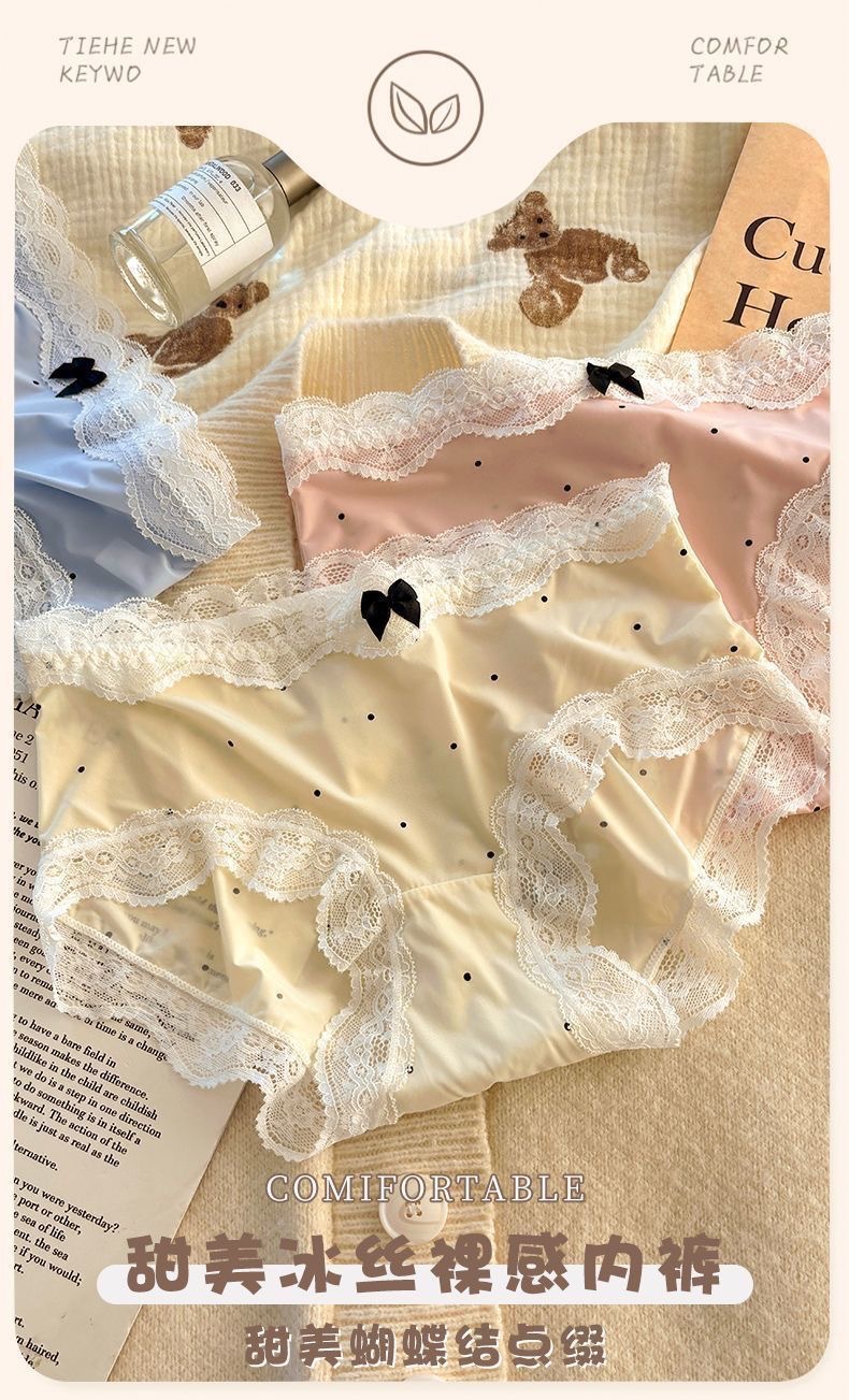 여성용 레이스 팬티, 이음매 없는 얇은 얼음 실크 항균 순면 가랑이 섹시한 소녀 순수한 욕망 스타일 프렌치 팬티