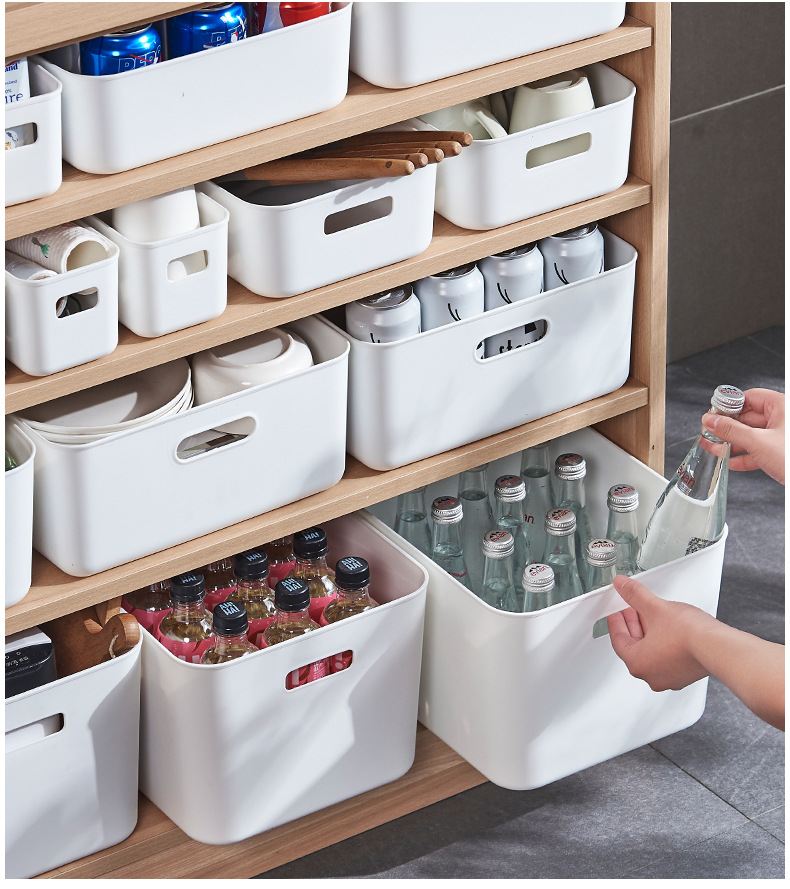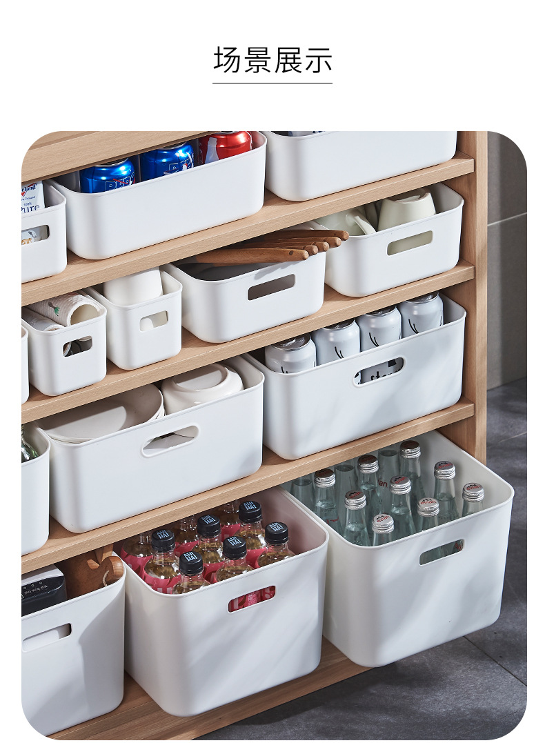 두꺼운 보관 상자 잡다한 보관 바구니 주방 캐비닛 플라스틱 보관 상자 직사각형 흰색 보관 바구니 책상 프레임