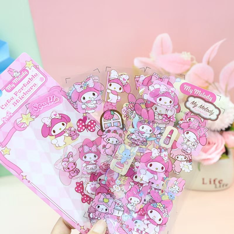 어린이와 소녀를 위한 새로운 Sanrio PET 방수 스티커 5개, 절단되지 않은 조경 스티커, 고가 DIY 스티커스토어 가기