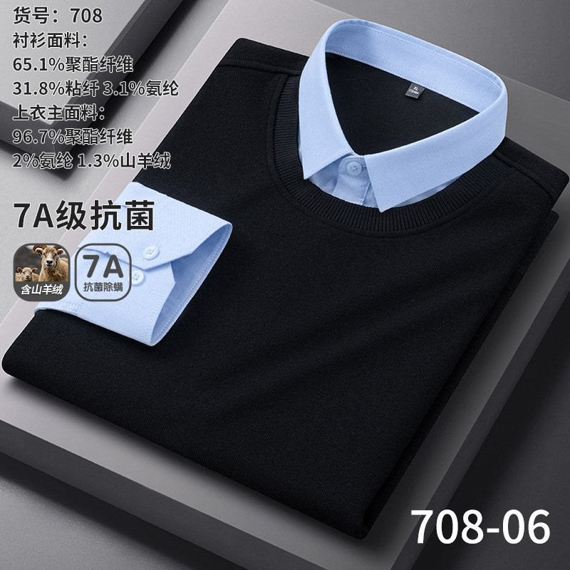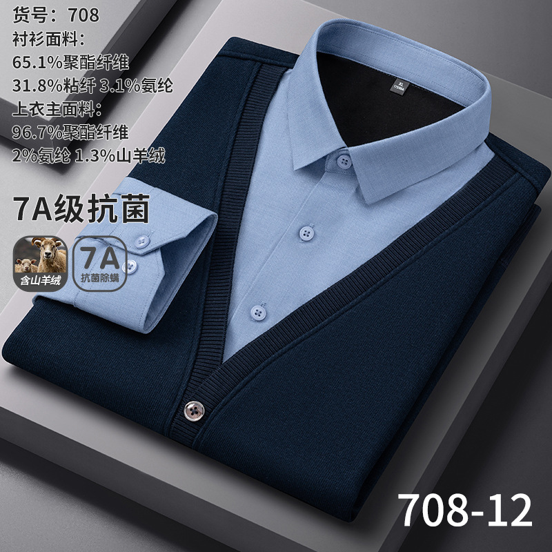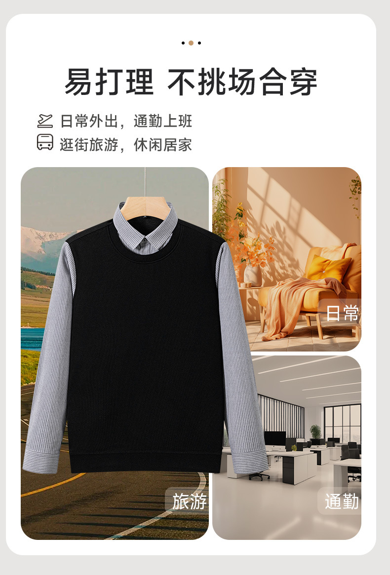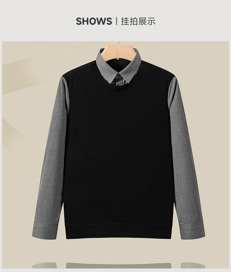 봄 신상 남성용 캐시미어 니트 베이스 레이어, 두꺼운 비즈니스 캐주얼 노아이언 페이크 투피스 셔츠스토어 가기