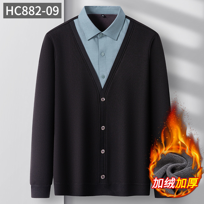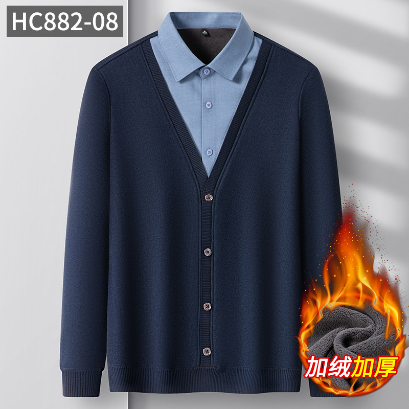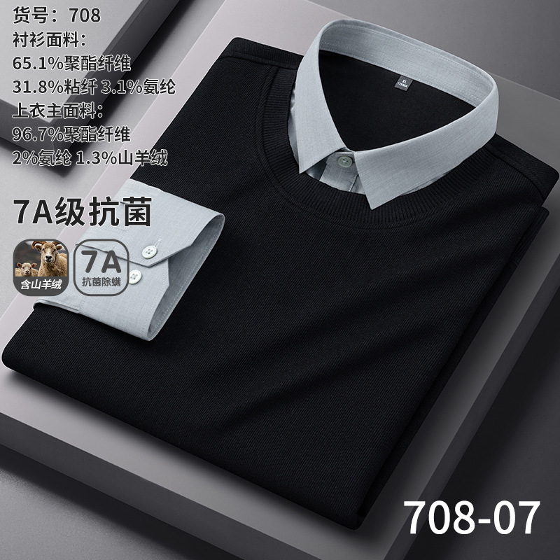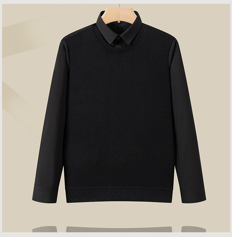 봄 신상 남성용 캐시미어 니트 베이스 레이어, 두꺼운 비즈니스 캐주얼 노아이언 페이크 투피스 셔츠