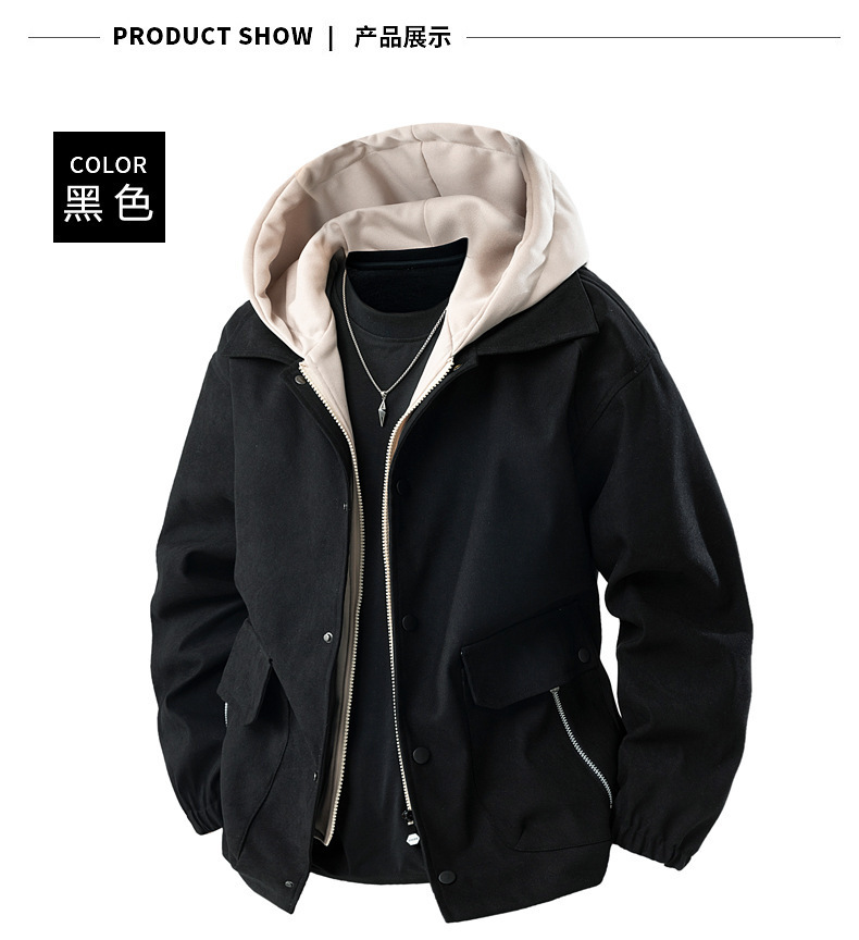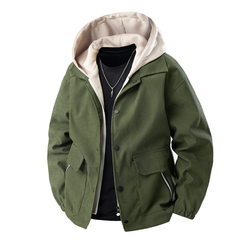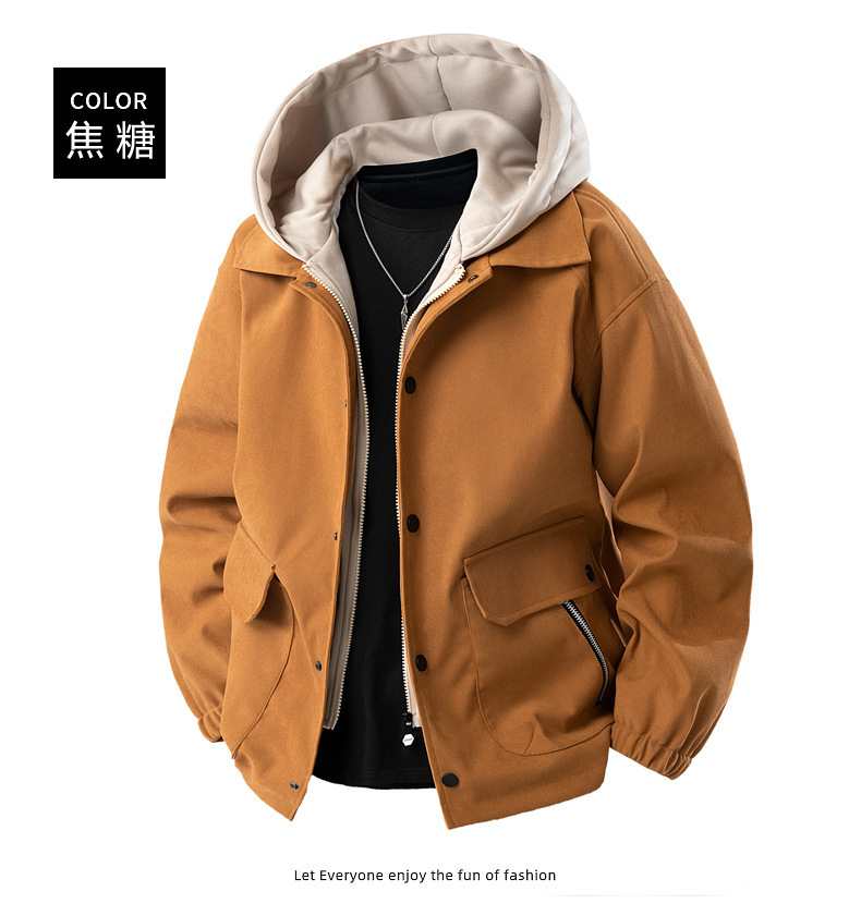 가짜 투피스 남성 코트 봄, 가을 신작 후드 재킷 트렌디 브랜드 다용도 탑 캐주얼 루즈 워크 재킷