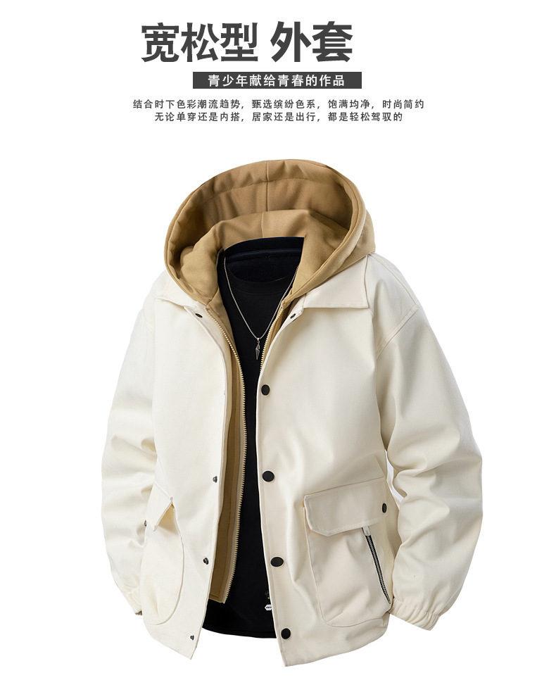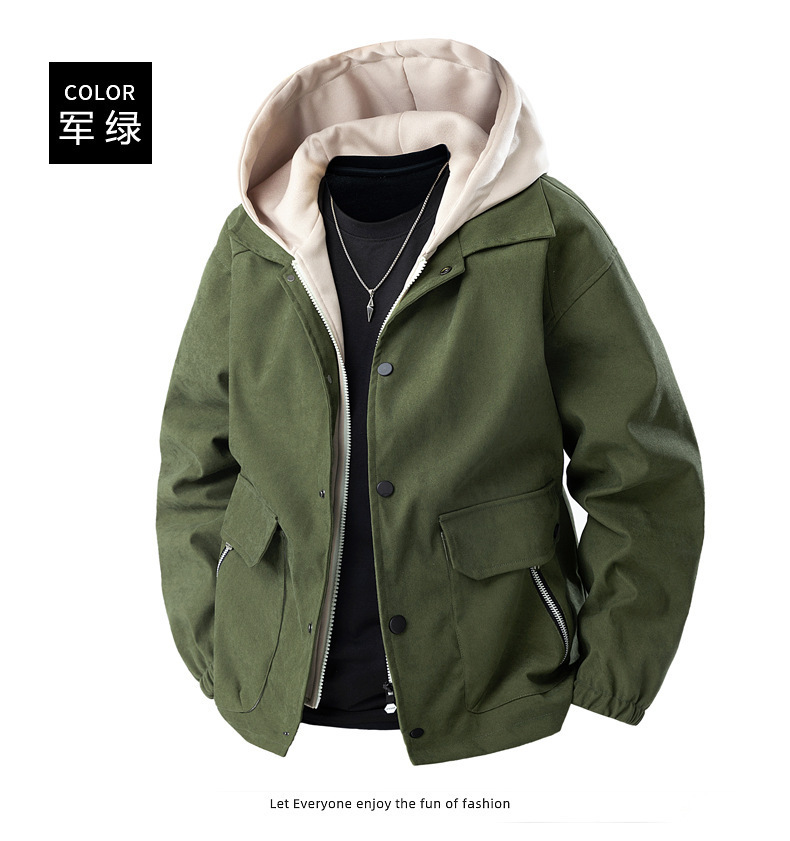 가짜 투피스 남성 코트 봄, 가을 신작 후드 재킷 트렌디 브랜드 다용도 탑 캐주얼 루즈 워크 재킷스토어 가기