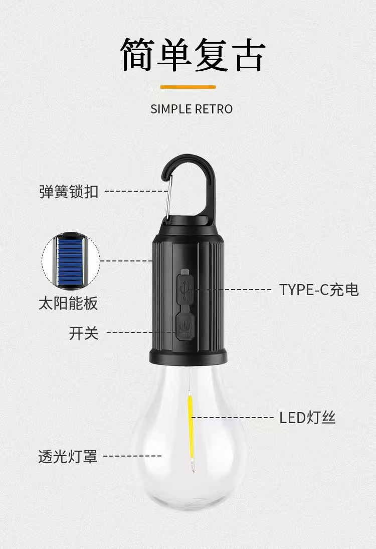 새로운 국경 간 태양 충전 캠핑 램프 복고풍 캠핑 램프 LED 텅스텐 텐트 비상 전구 캠프 램프