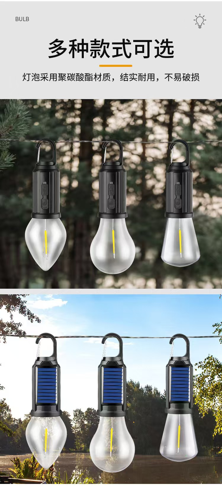 새로운 국경 간 태양 충전 캠핑 램프 복고풍 캠핑 램프 LED 텅스텐 텐트 비상 전구 캠프 램프스토어 가기