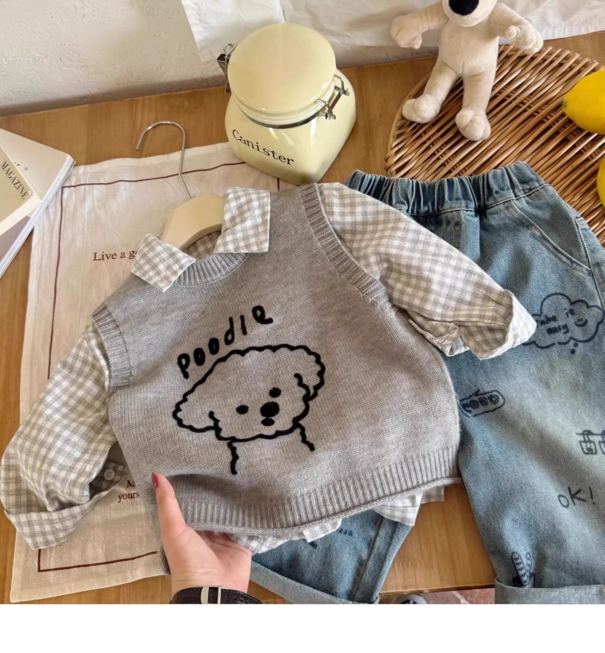 소년과 소녀를위한 어린이 청바지 2025 만화 낙서 부드러운 청바지 어린이 느슨한 캐주얼 다목적 스트레이트 바지 봄